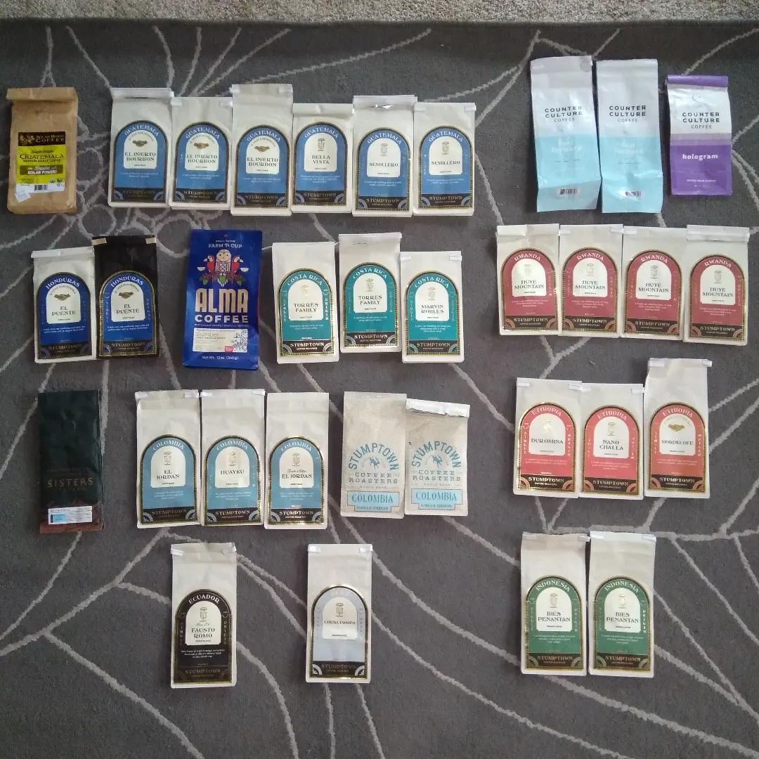 Organized by my geography-obsessed child, these are all the coffee bags my household has gone through this year. And yes, I do plan to spice things up by trying some new roasters in 2023.