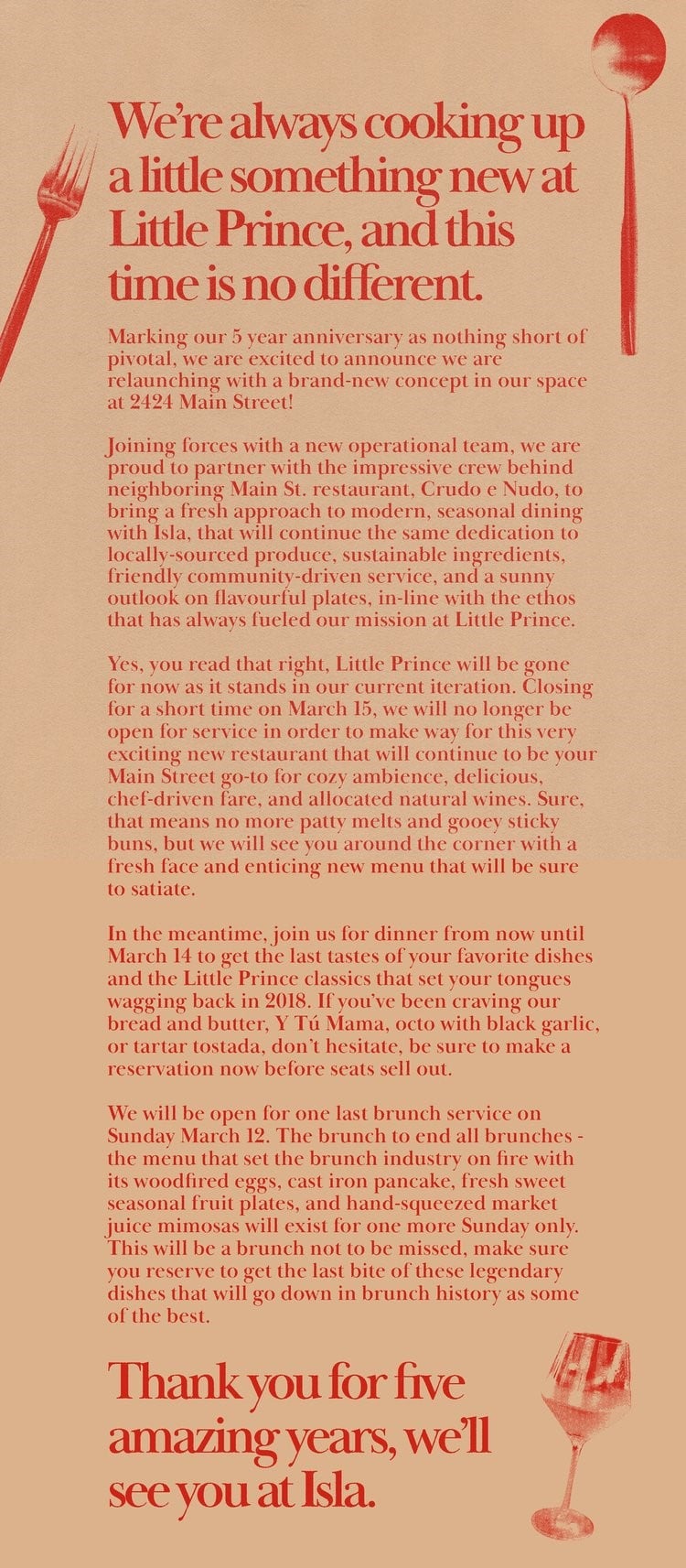 Little Prince in Santa Monica closing, relaunching as Isla by liverichly 1 Comment Entire_Hyena_3216 3 years ago This will be really awesomeWrite A CommentYou must be logged in to post a comment.