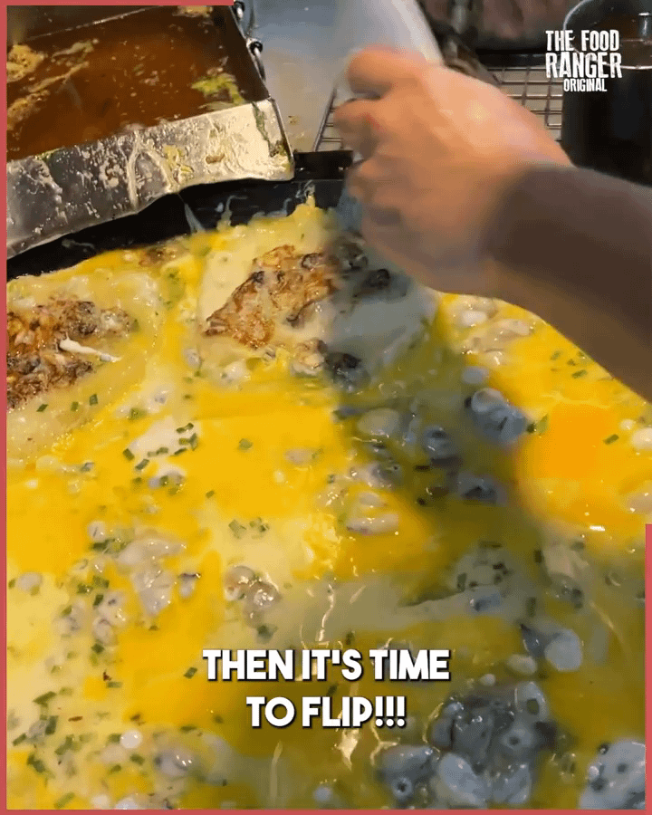 Oyster omelette making at Sanhe Night Market, New Taipei City