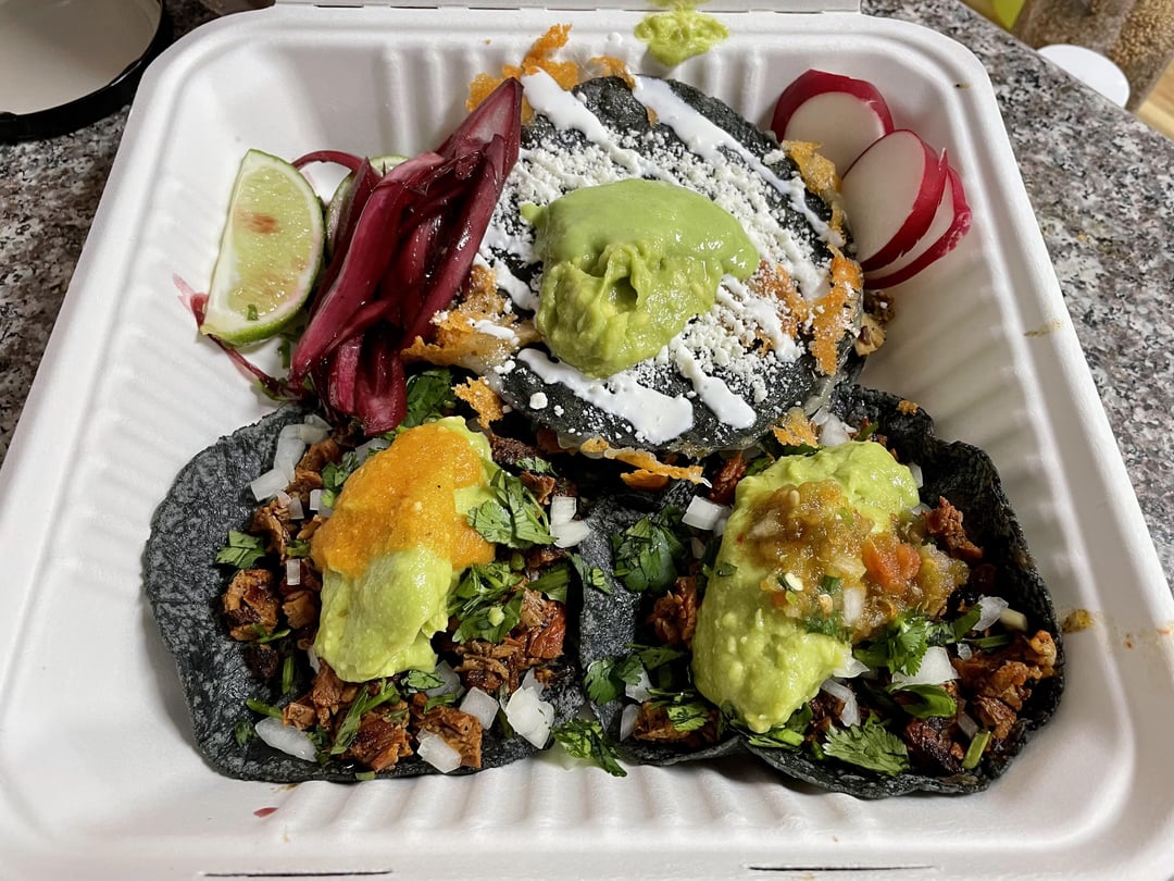 Villa’s Tacos in HLP – pollo mulita and asada tacos. Handmade, nixtamalized blue-corn tortillas.