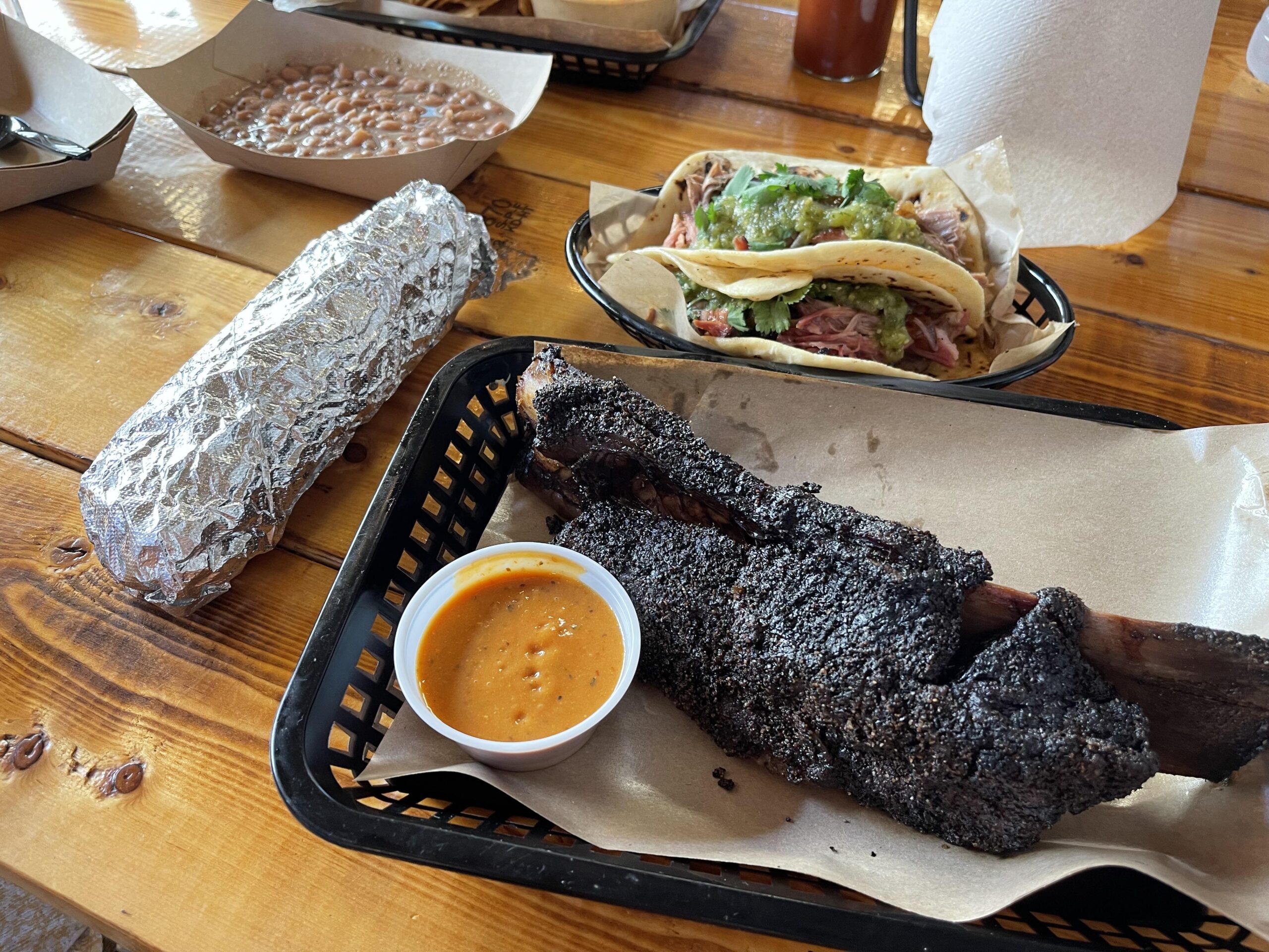 Their brisket, beef ribs, and pork ribs are in the conversation for best in TX. Tortillas are great, too. All of their sides, however, are pure trash. Their tacos? Soupy, goopy, wet messes. Now that I think of it, they’re pretty bad at everything other than the stuff they absolutely ace.