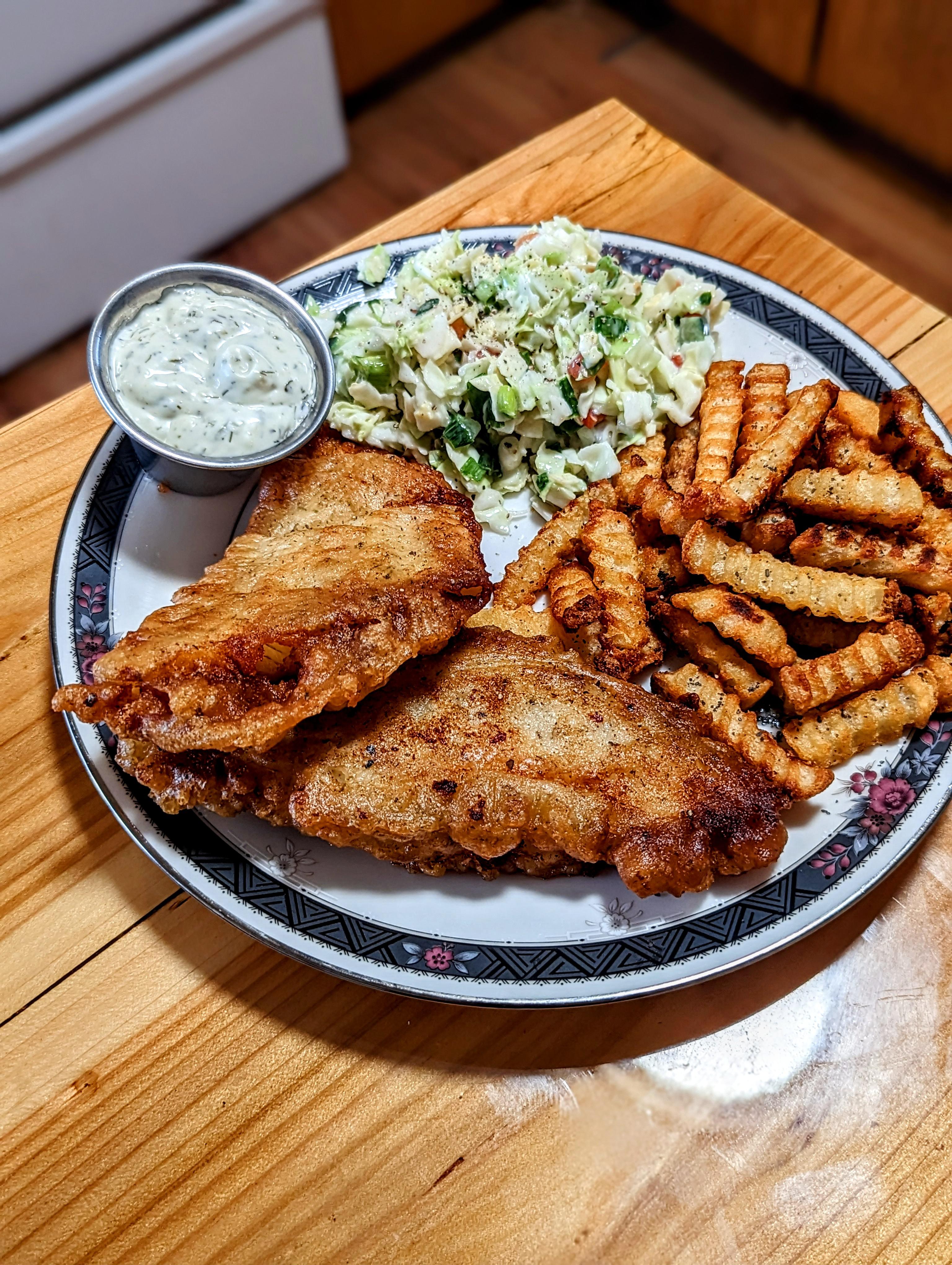 [Homemade] Beer Batter Alaskan Cod and Chips W/Slaw