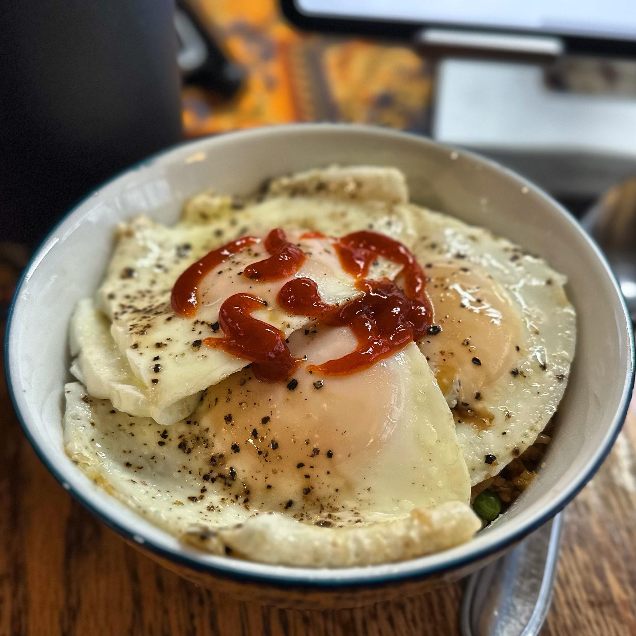 Over Medium & Chicken Fried Rice with Sweet Sambal (Indonesian Chili Sauce) by dauerad 1 Comment SimpleVegetable5715 3 years ago Three eggs! How luxurious!Write A CommentYou must be logged in to post a comment.