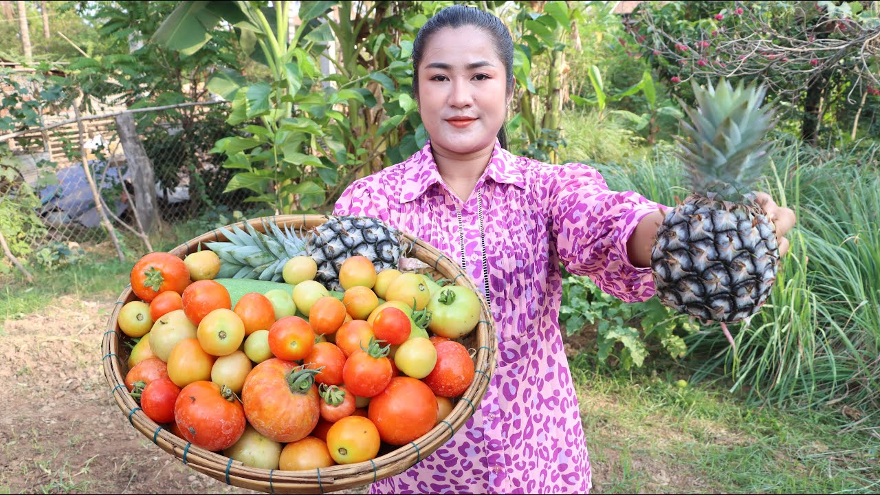 Hello friends. Welcome back to visit my channel. Today I’m in my vegetable garden. I harvest vegetable for my recipe. I collect tomato, pineapple, winter melon to make sour fish soup. It is delicious.