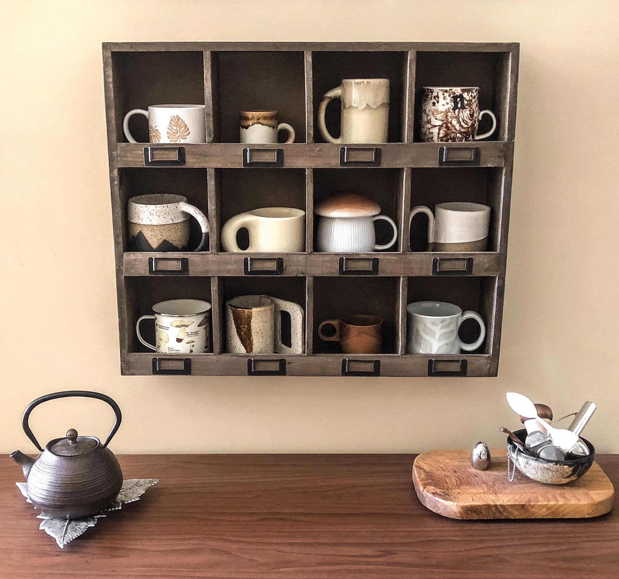 this is such a special and comforting take on the usual mug collection spaces i see. so clean and warm