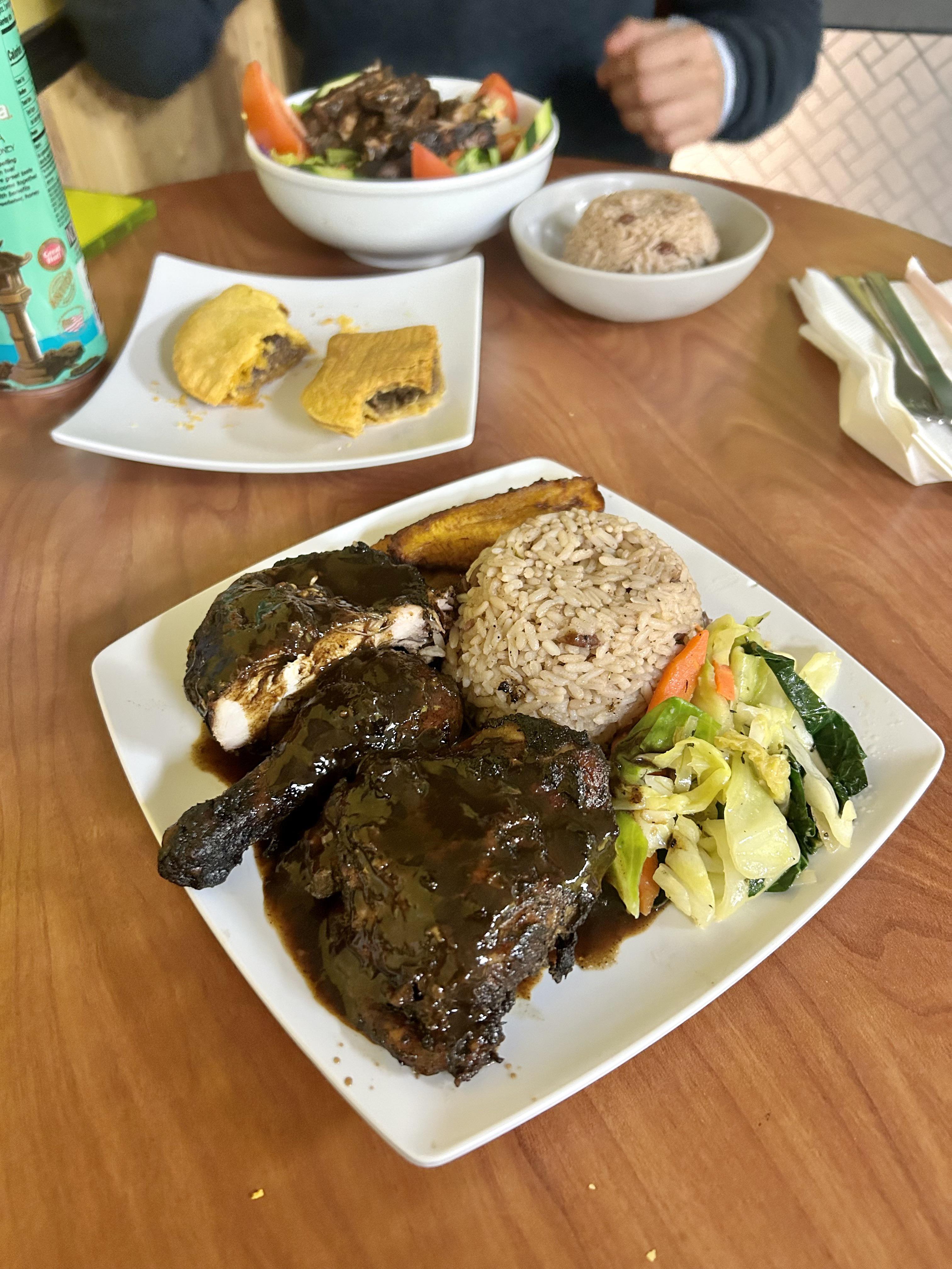 Jerk chicken plate from Karuba’s Yardy Kitchen in Inglewood. Fire.