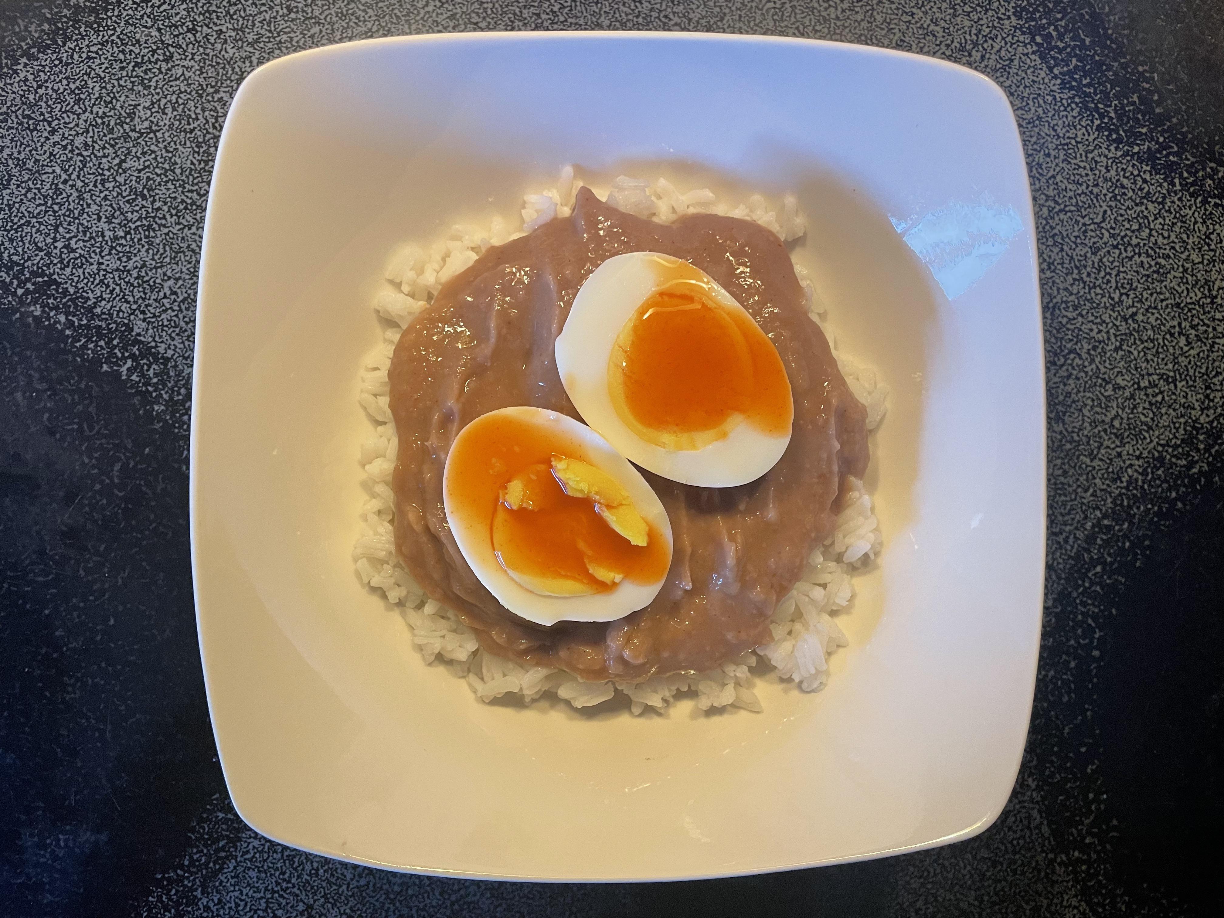 Refried beans on rice, with a hard-boiled egg on it by Imaginary_Bee_1796 1 Comment udumslut 3 years ago That ain’t hard boiled, my friend. I’d still eat it.Write A CommentYou must be logged in to post a comment.