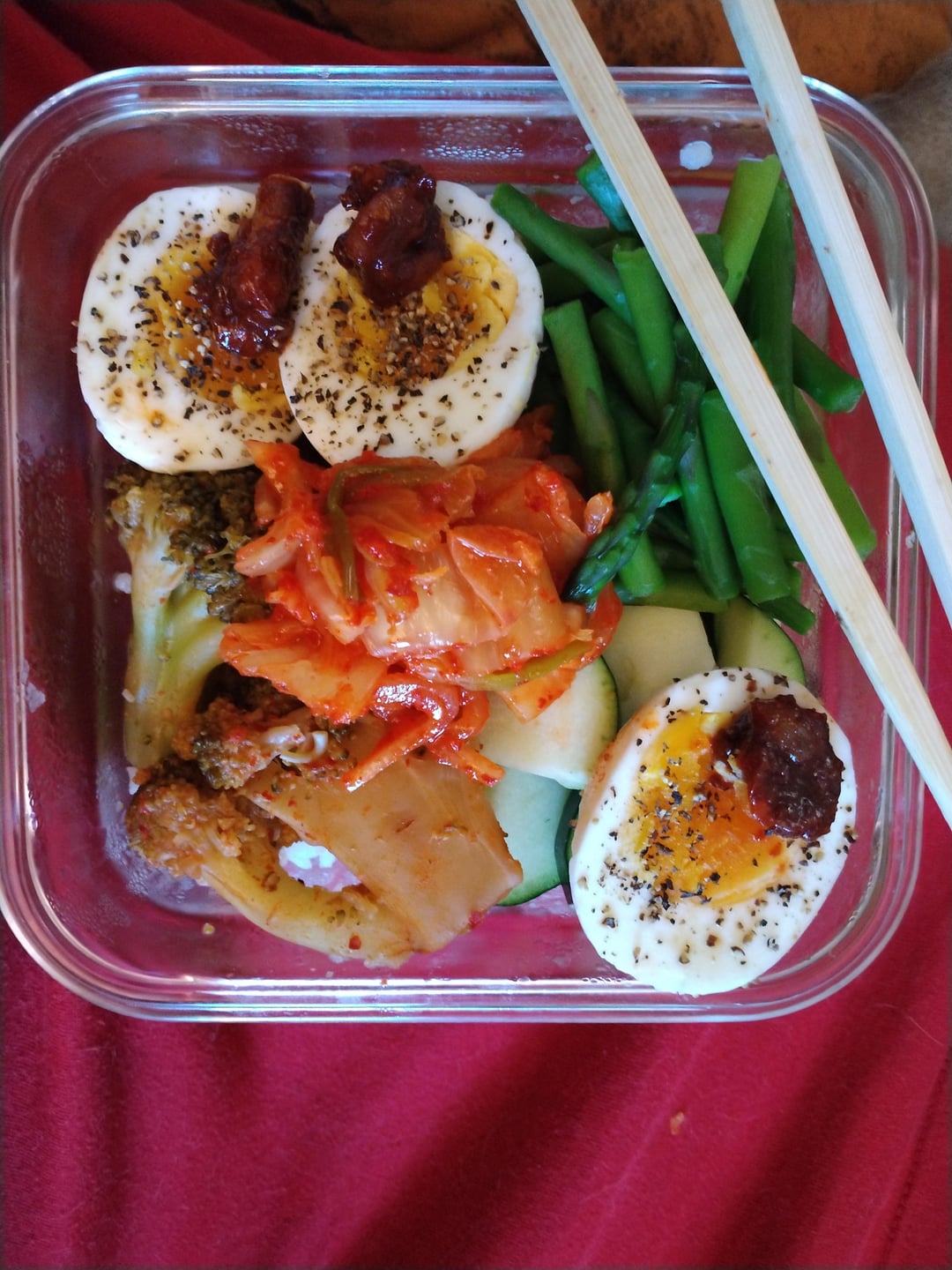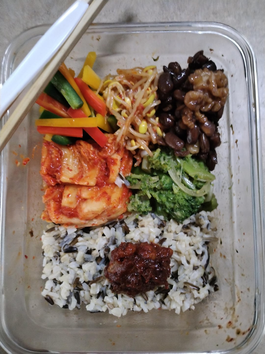 I actually took a weekend to plan out budget and weekly food plans, because since I want to have side dishes in the fridge at all times, actual specific meal planning would be tedious lol. So i just came up with rice, protein, and i try for at least two other veggies/or beans in my meal besides kimchi. Let’s just say with all the veggies and wild/brown rice mix, I basically have to force myself to eat the meat to get that protein in lol