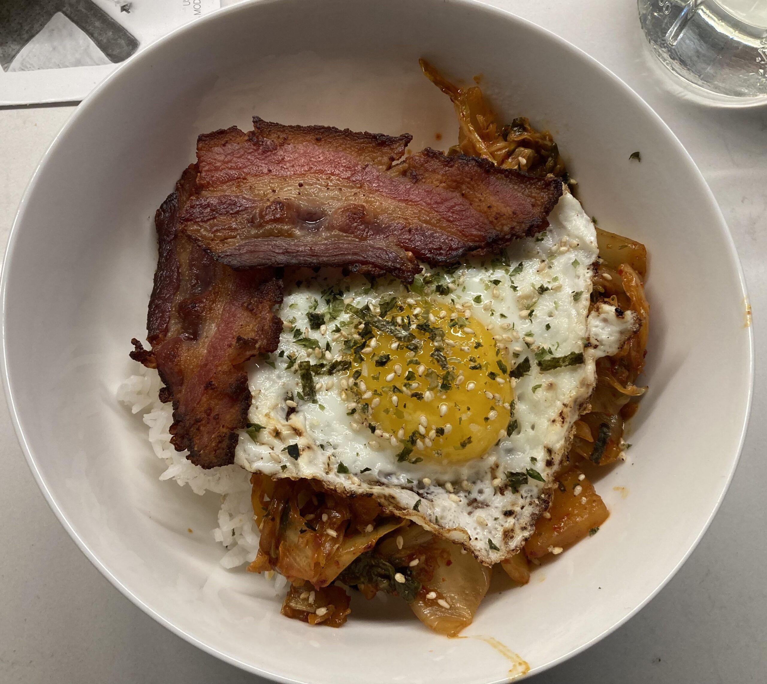 Delicious breakfast this morning inspired by one of the pinned popular posts in this sub and a trip to Costco where I saw their kimchi