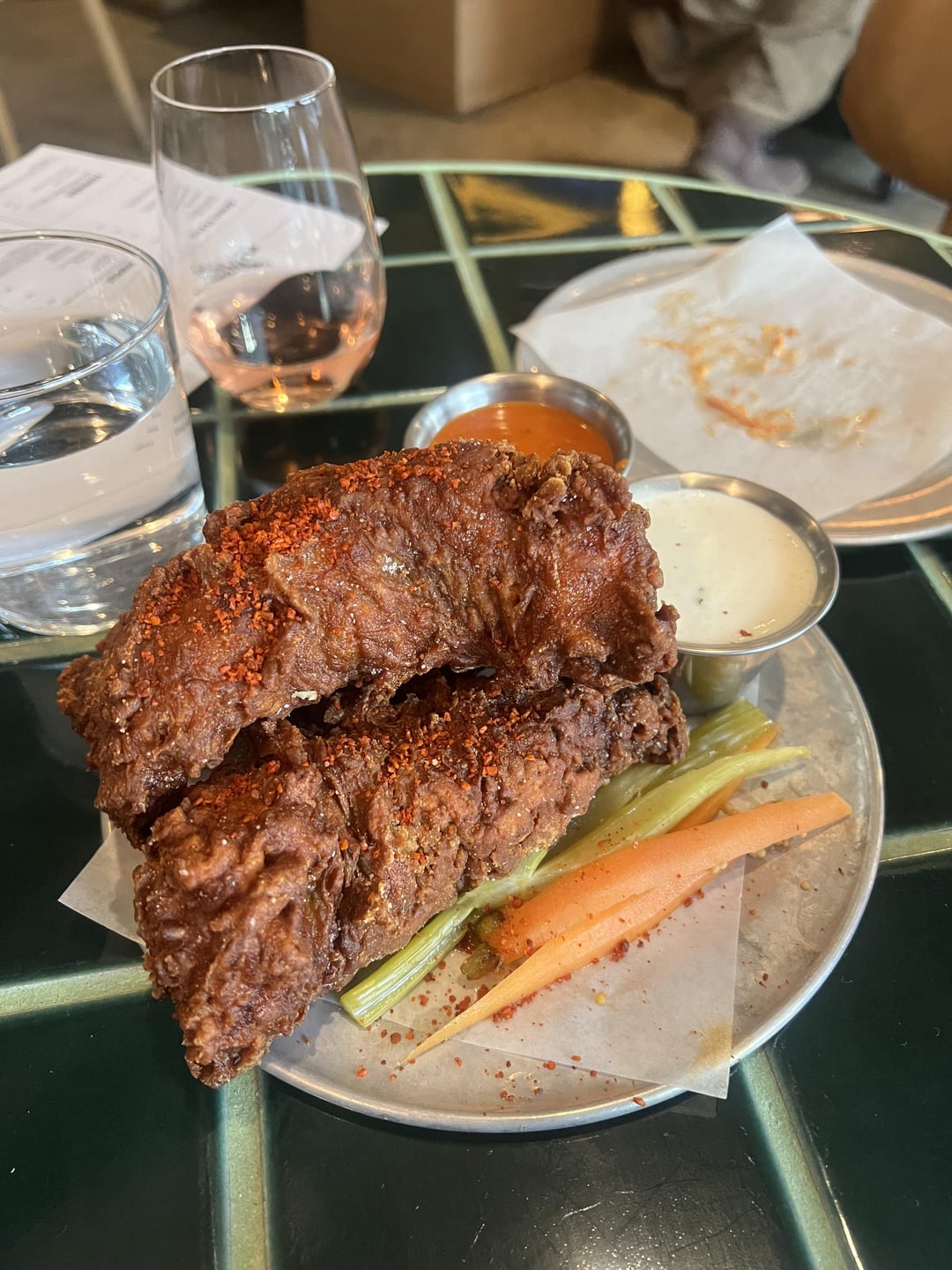We had a solid experience there this week, but I wouldn’t say it was amazing. I really liked all of the flavors and crazy combinations, with the exception of the wings (which were cooked perfectly but didn’t have much flavor). The pizza was awesome and the rigatoni was delicious. Realy enjoyed the okra fries and onion rings. The slider we had was spicy but didn’t quite pack the flavor punch that everything else did. Service was fine; again not great, but luckily no funny wine business :).