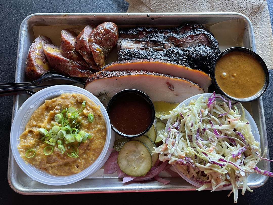 Yep yep, my favorite BBQ place! Brisket is on par with the other top places, but the thing that really sets them apart are the sides. The jalapeno slaw is so good to make those little sandwiches with the bread they give you, the grits are fucking incredible, the free beans are awesome, the gouda Mac is the best Mac and cheese I’ve had at any BBQ spot, the Mexican chocolate rice pudding is so damn good, and then last week when I went they has a lamb taco as a special and it was maybe the best thing I’ve ever eaten from there. This might be the only BBQ place I’ve been to where literally everything on the menu is among the best I’ve had of that dish. Just incredible