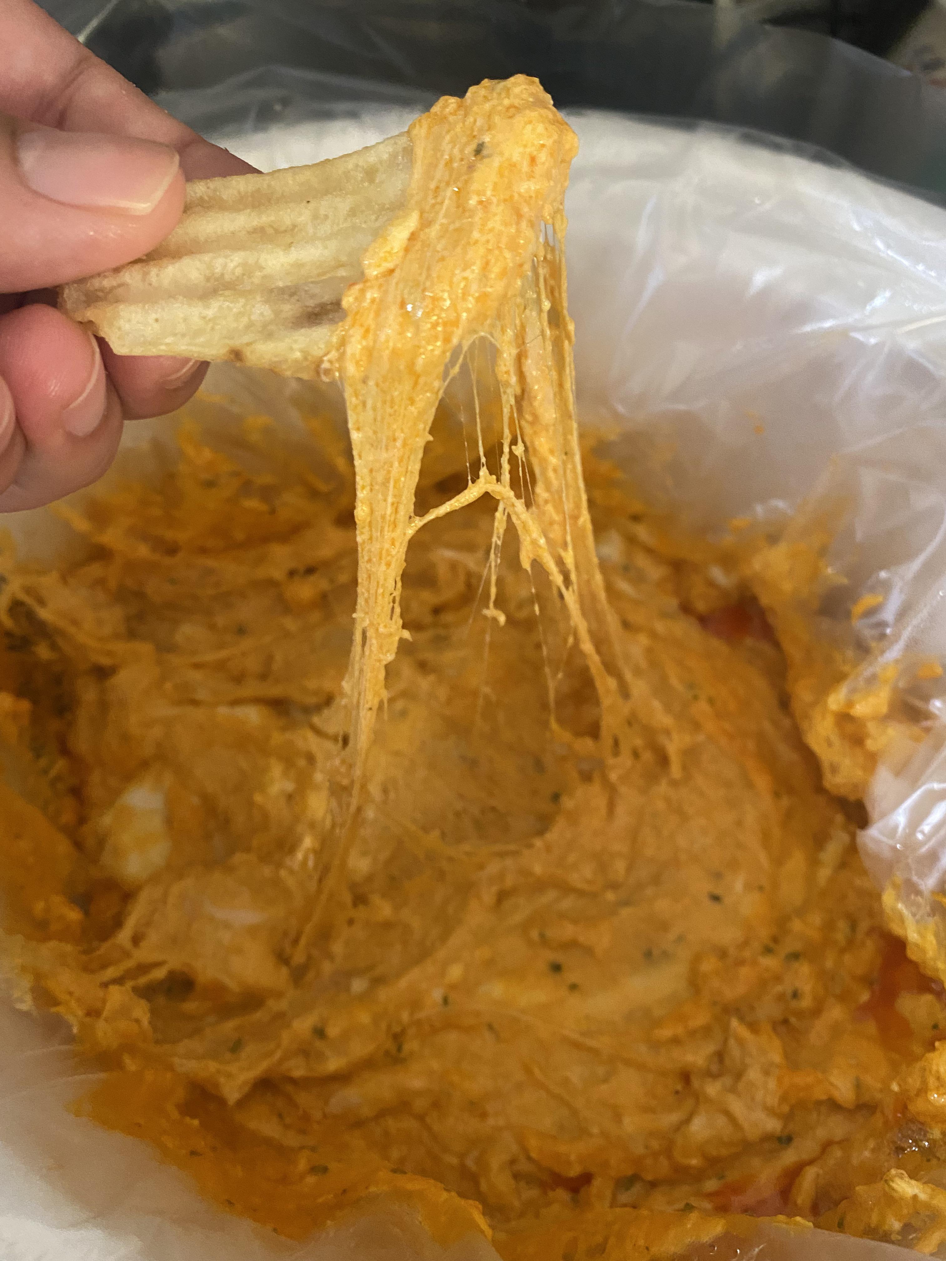 Not the prettiest pic but I made a couple differences to most buffalo chicken dip recipes and I love it! I used Unflavored Greek yogurt and Oaxaca cheese