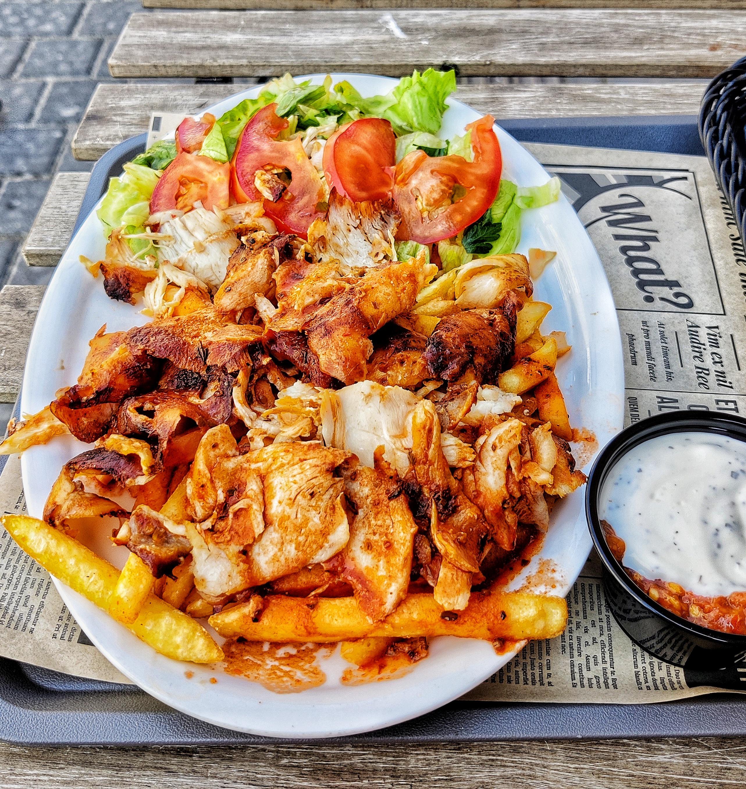 Chicken döner + fries + salad + garlic and tomato sauce mix