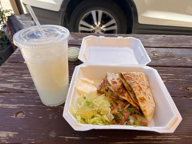 Cochinita Pibil is amazing at this place. Pictured here is a Cochinita Pibil quesadilla and a Soursop Agua Fresca.