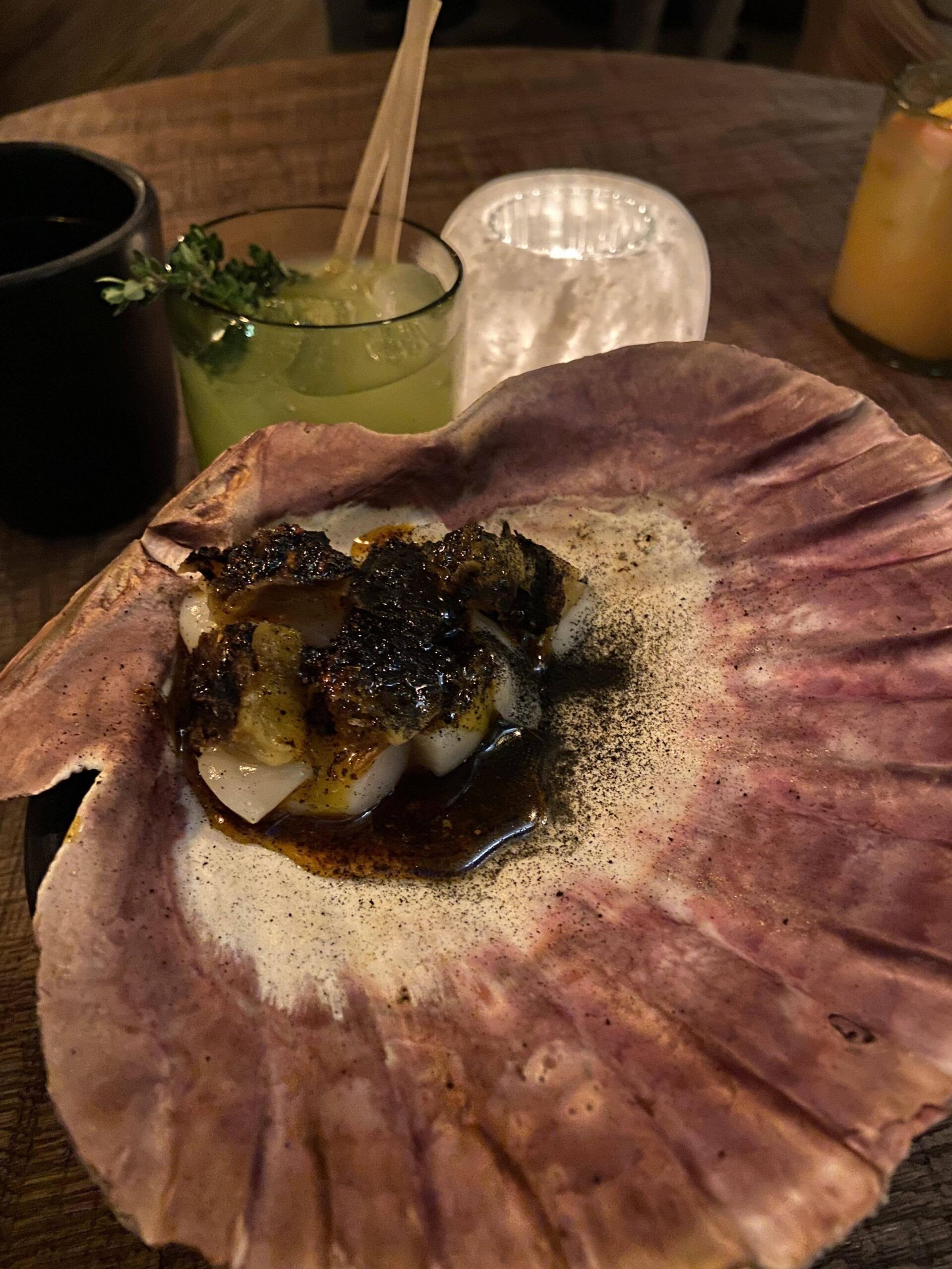 1. Scallops w/ hearth roasted pineapple, habanero ash and longanisa oil. Honestly the longanisa oil brought it all together and gave it a good amount of heartiness and flavor to the sweet scallops. Great start.