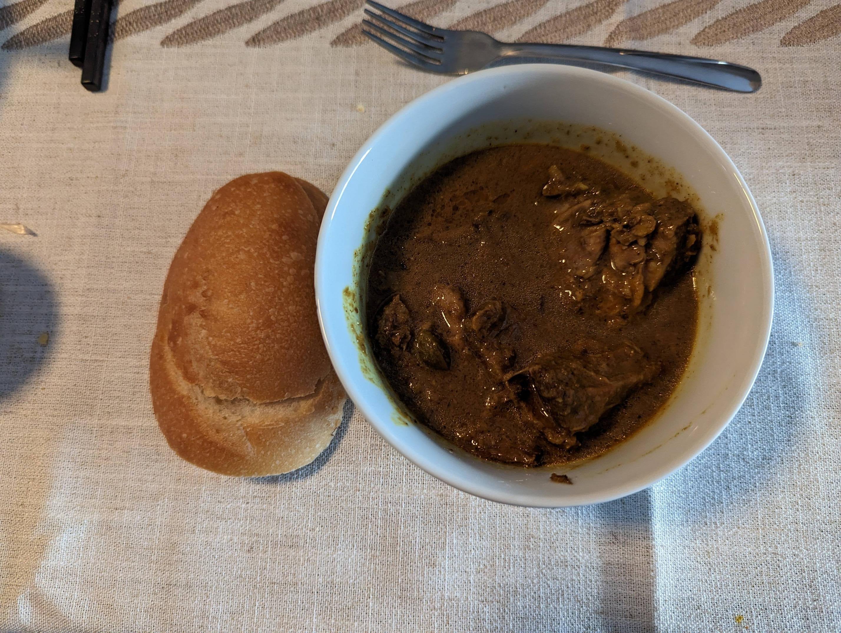 This is an Indian and Thai inspired dish from Malaysia. It is distinct for its strong lemongrass and citrus flavor. It has big chunks of beef like a beef stew might.