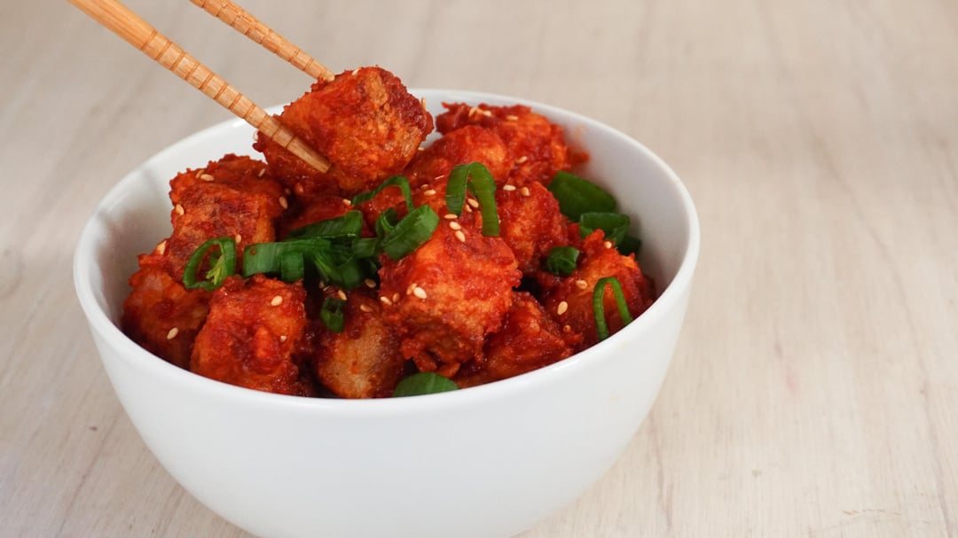 Korean Pork Belly Burnt Ends – Smoked pork belly burnt ends, but instead of BBQ sauce, given a seasoned cornstarch and flour dredge and deep fried and tossed in a Korean sauce (available in Mild, White People Spicy and Spicy), with toasted sesame seeds and green onions for garnish, suggested to be served over rice – 30/lb, 19/half lb