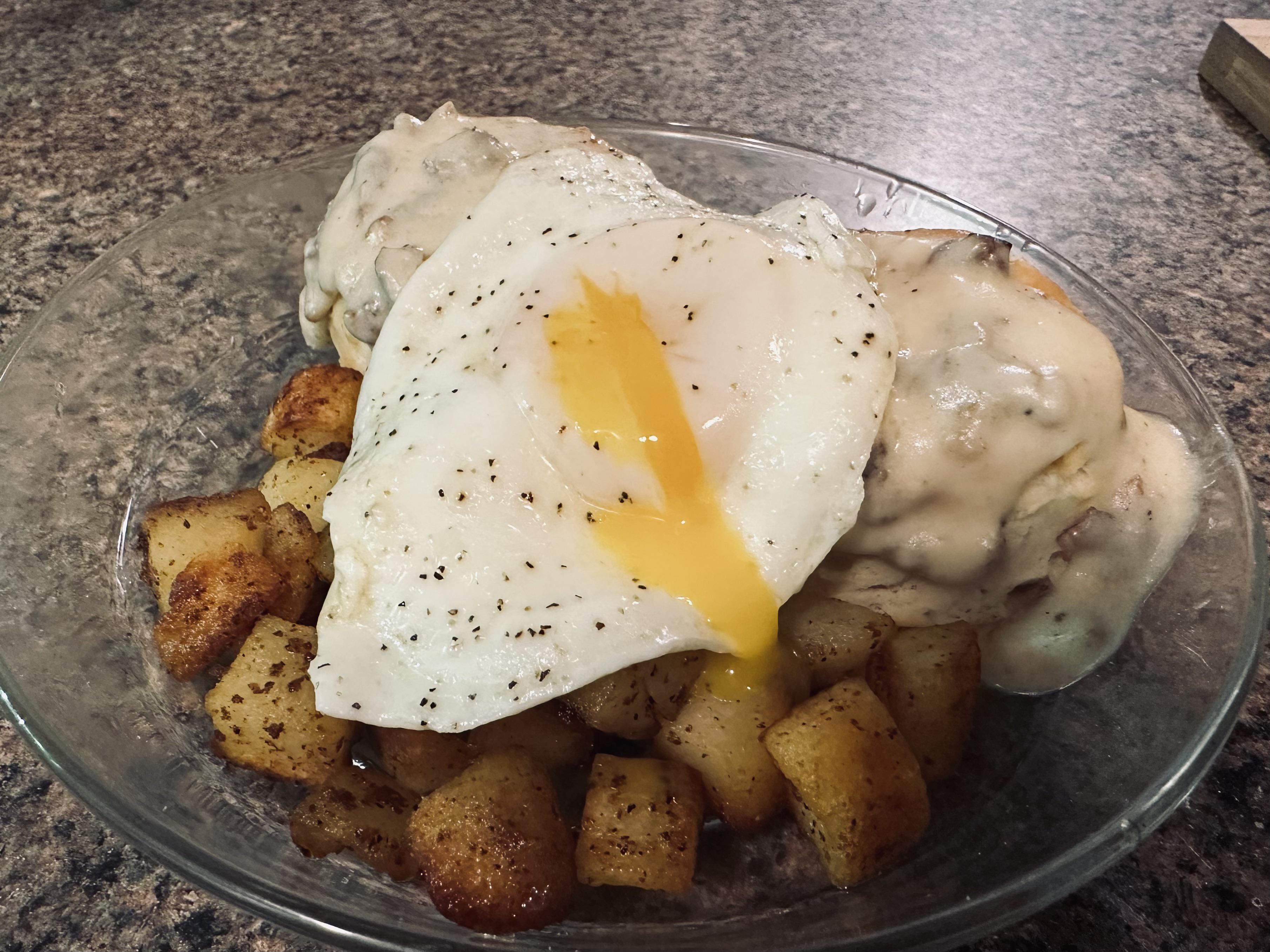 Egg on sausage gravy and biscuits w/ fried potatoesby morganripley669 7 Comments magic4242 3 years ago As a professional chef, I must say that is a perfect egg. NW Aevynne 3 years ago It looks so good I wanna CRY definitely_not_tina 3 years ago Throw in some corned-beef hash and this was a treat my dad would make be when he’d sometimes drop me off at High School. Whiticisms 3 years ago That looks delicious. I haven’t been able to eat in a few days and I want some of that. Omg. brizzboog 3 years ago A bit more gravy for the taters and a second egg and I think you’ve got my last meal request if I ever end up on death row. [deleted] 3 years ago Sunday breakfast when I eat WHATEVER I want.Add hot sauce… Workto-Mills-7287 3 years ago Add syrup & hot sauce. Mmmm.Write A CommentYou must be logged in to post a comment.