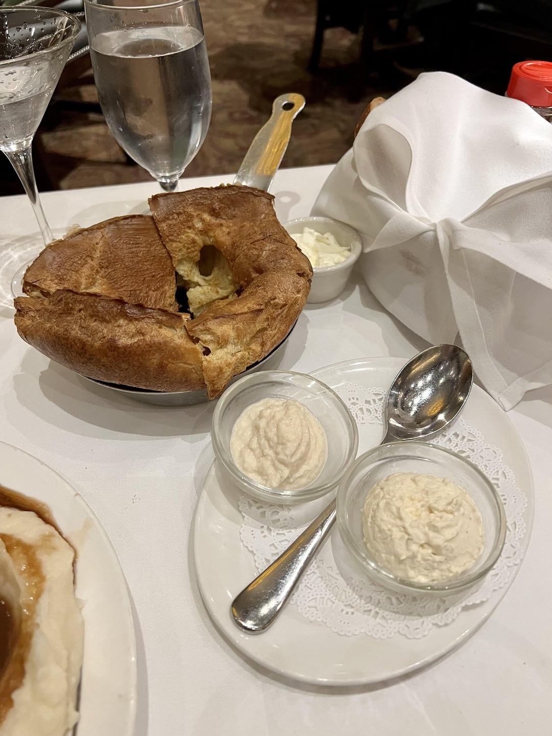 1. Tam O’Shanter in Los Feliz is in the same family of restaurants. If you go there (i.e. for their fresh-carved sandwiches, which are AWESOME), or just for a less fancy schmancy meal, join their loyalty club. You’ll end up with discounts at either Tam OR Lawry’s Prime Rib, which can really add up (we ended up with $50 off last time). 2. If it’s your birthday, you can often get a free dessert (again, via the loyalty club). 3. They USED to have CC Brown’s hot fudge, the legendary home made hot fudge at the legendary former ice cream joint on Hollywood Blvd. Don’t know if they still do, but worth a try for next time!
