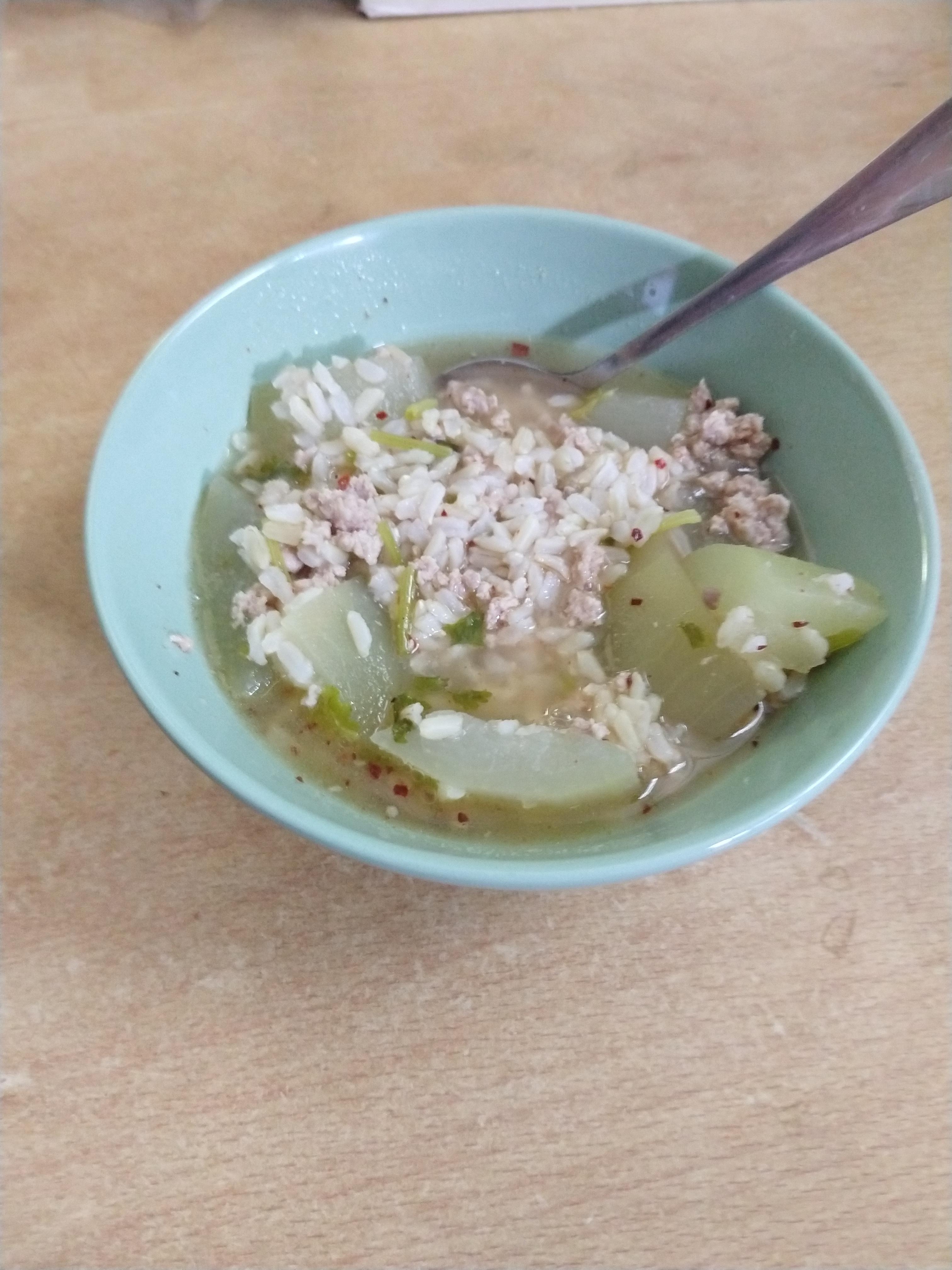 Rice with winter melon and pork soup