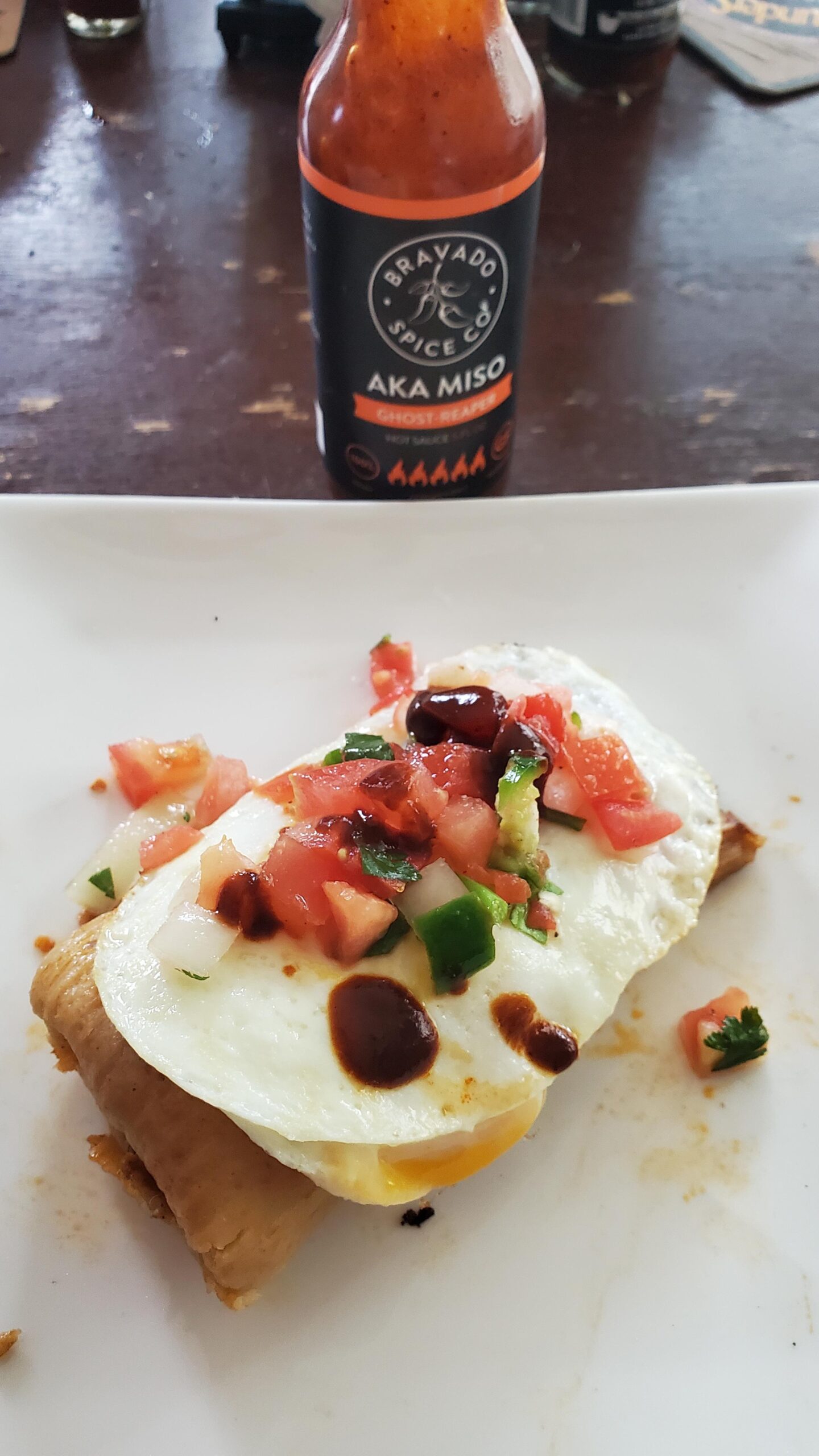 Tamale, egg, salsa, & Aka Miso