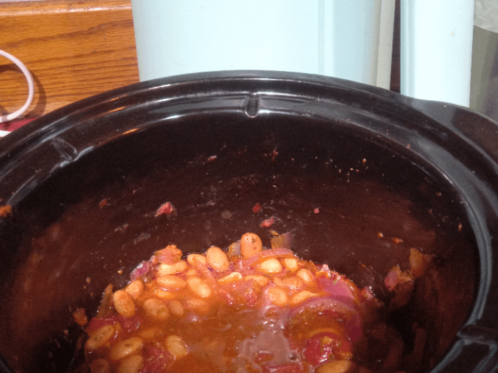Add pinto beans, 1/2 tsp salt, rum, water, juice of one half lime 1/2 of the mint and onion mixture to insert of slow cooker. Stir gently to combine.