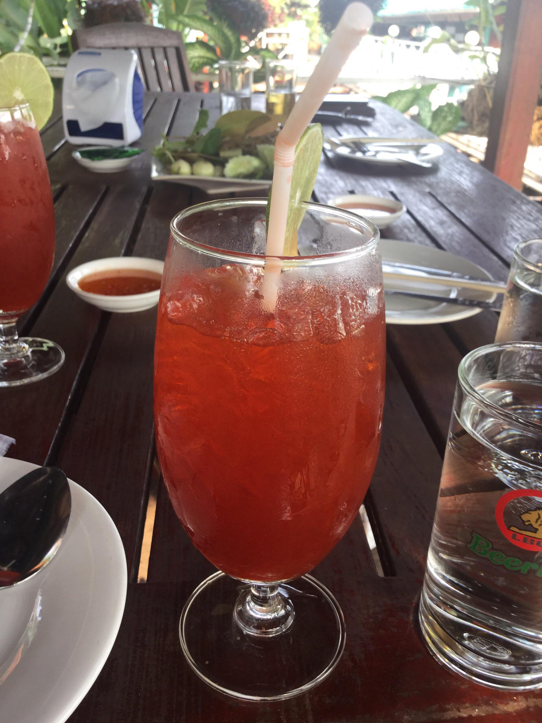 It looks maybe a little too reddish to be watermelon from the pic but when I was in that area (Cambodia, Vietnam, Thailand) watermelon juice was super common. It was the most delicious thing ever and I had it with every meal. I’ve never had anything like it in any other place, and I’ve tried myself to make it and it tastes awful when I do.