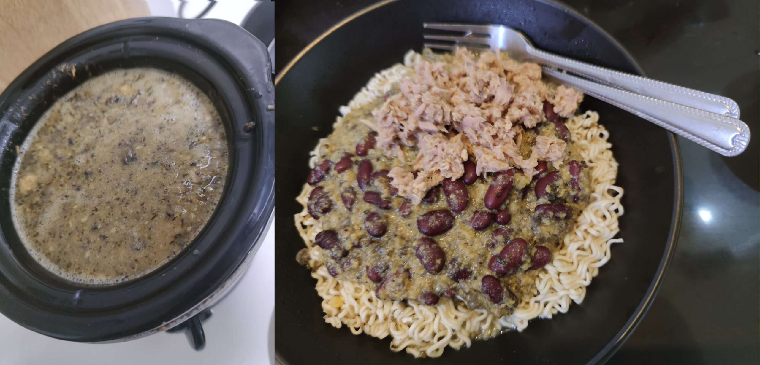 Green & bean soup on noodles + tuna.by foxvipus Write A CommentYou must be logged in to post a comment.