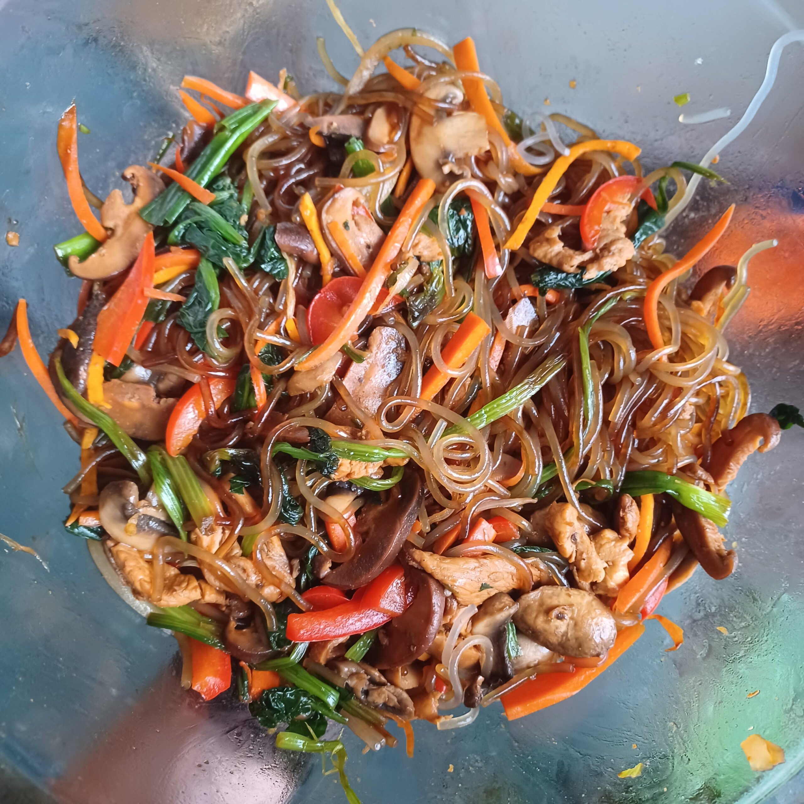 I am so lucky to have an Asian market within walking distance from my house. Today I made japchae!