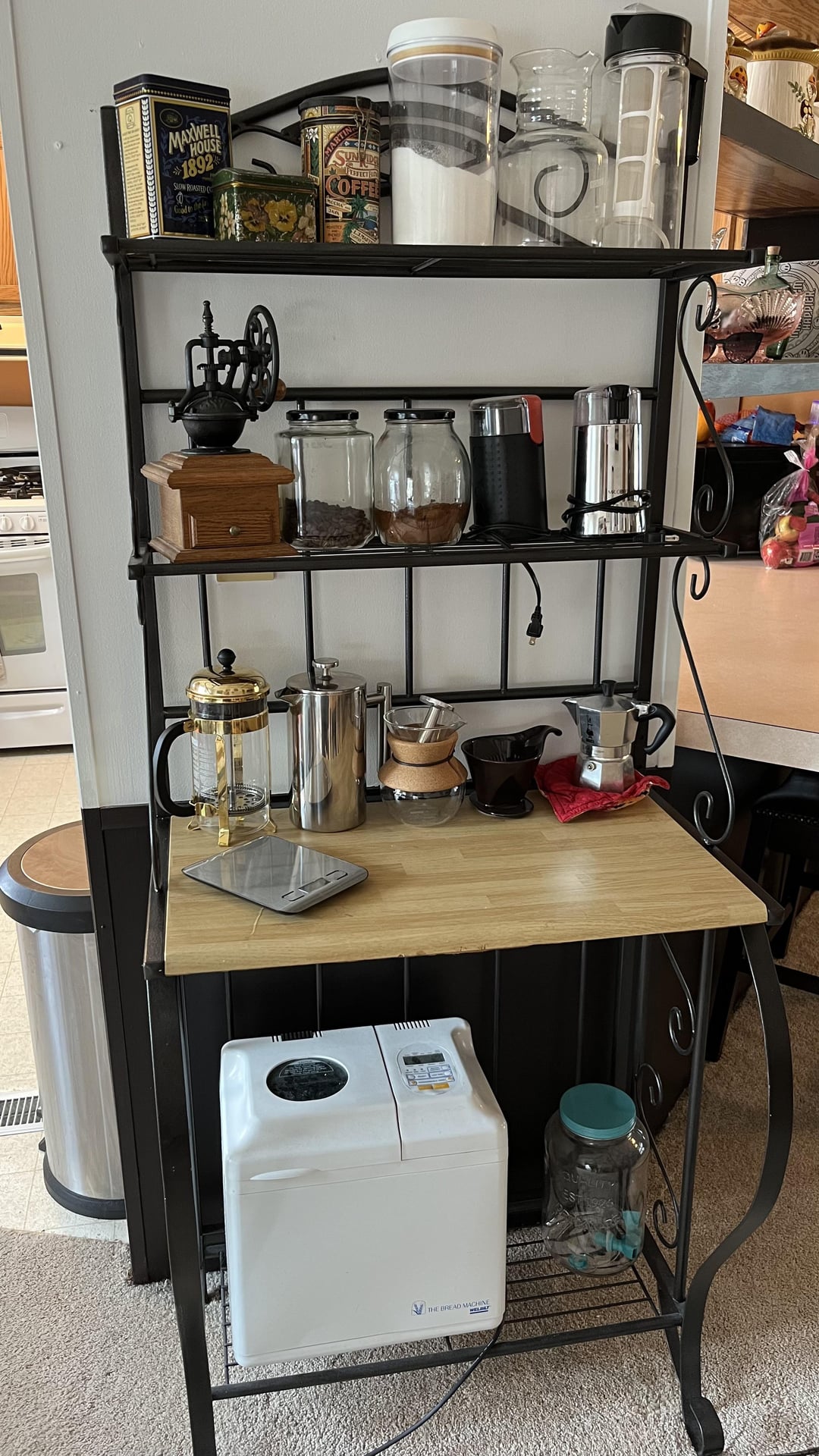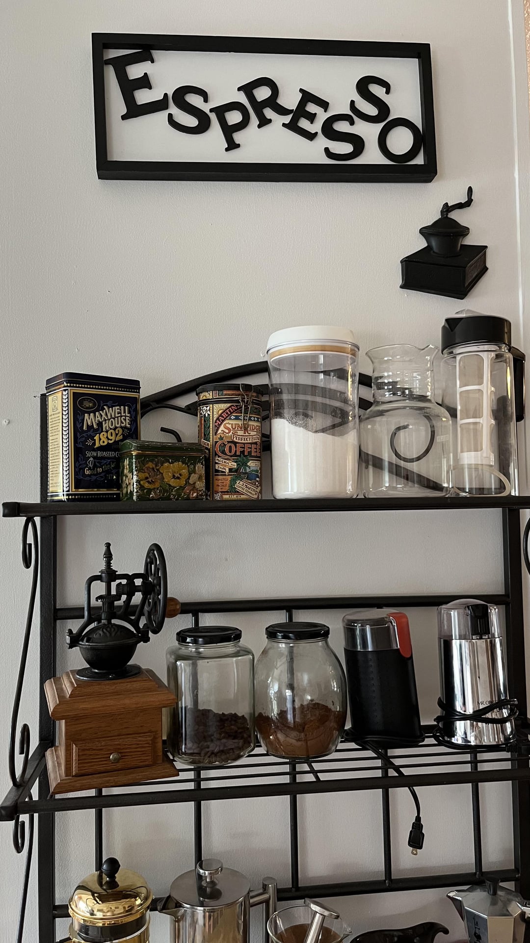 I made the espresso sign and re finished the bakers rack which was along the road, covered in dirt and grime. And yes that’s a bread maker at the bottom lol.