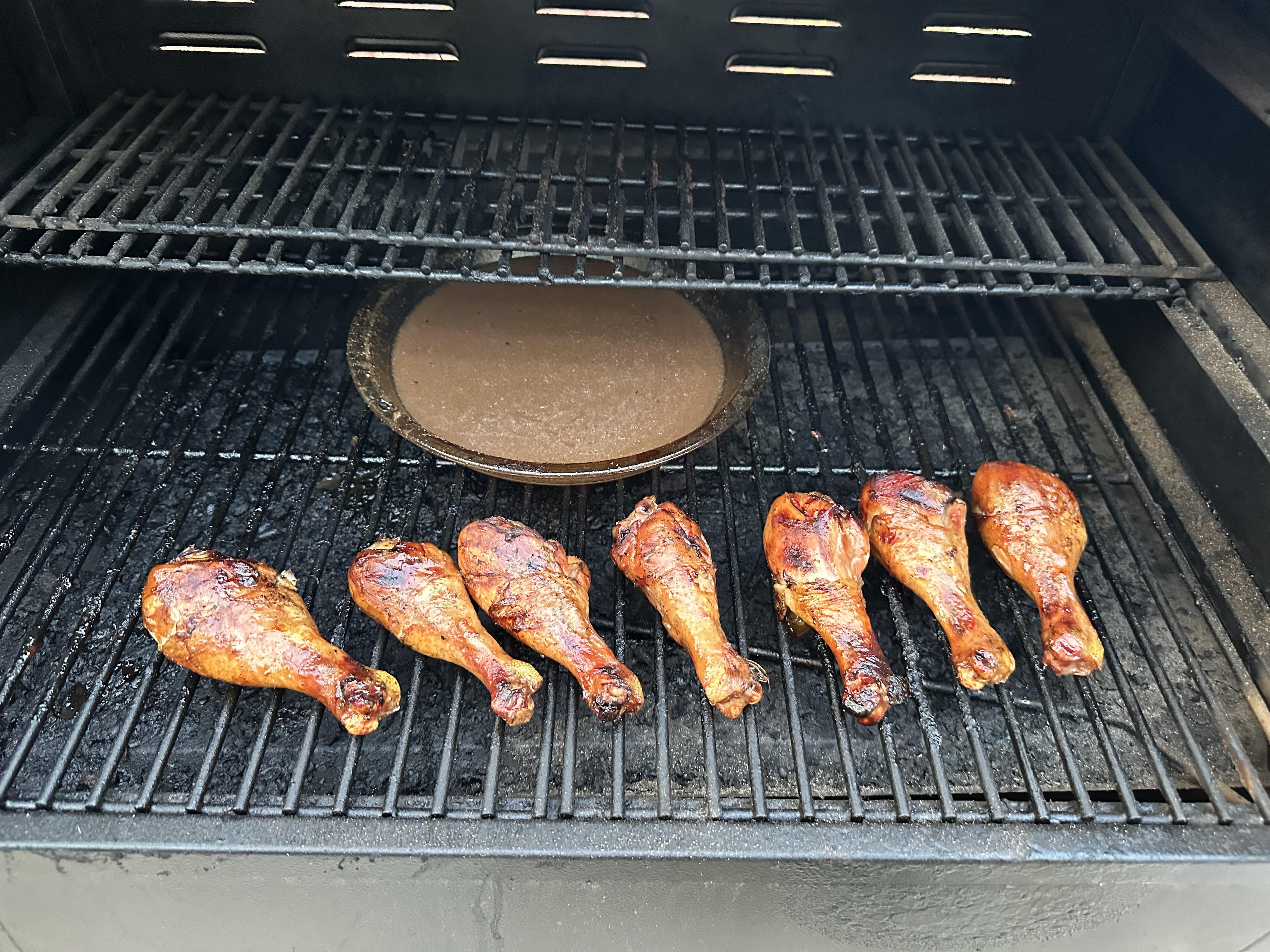 4. Cook to an internal temp of 165 degrees. Reduce heat to smoke only, and let the chicken smoke for an additional hour, basting it occasionally.