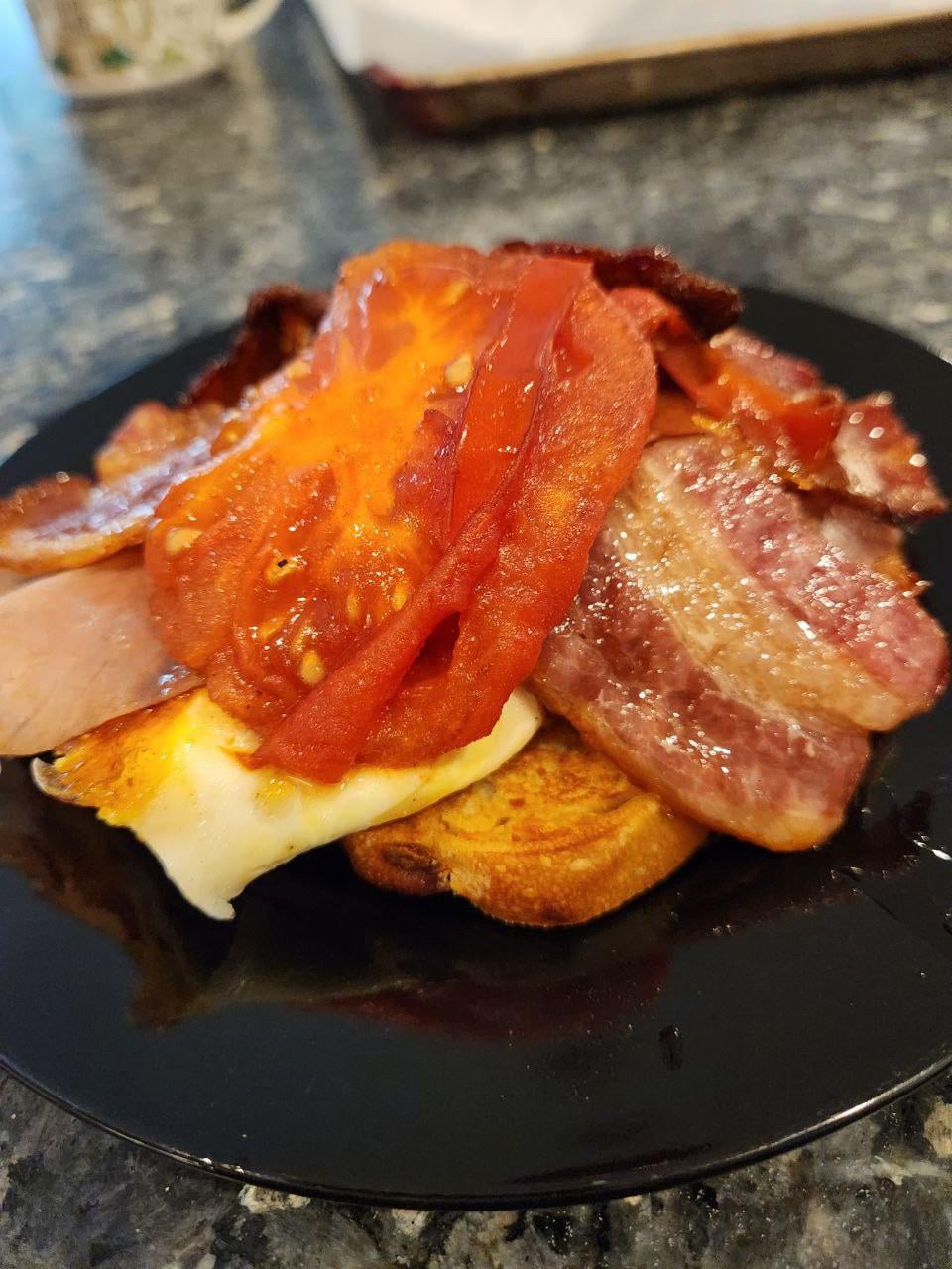 Jalapeño toast, roasted bacon, poached egg with cheddar, pan fried prosciutto di Parma, pan fried tomato with balsamicby Extension-Border-345 Write A CommentYou must be logged in to post a comment.