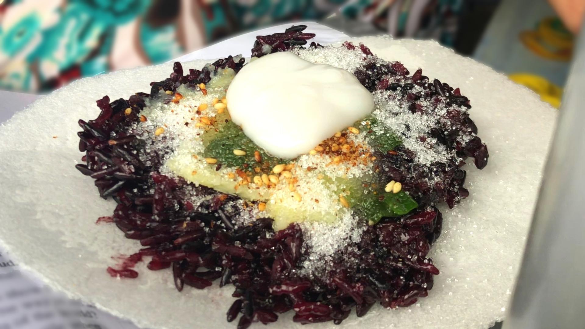 $.65 Cent Black Sticky Rice In Vietnamby streetfooddoctor 8 Comments streetfooddoctor 5 years ago Here is the video if you’re interested [https://youtu.be/92OSs8e3FGc](https://youtu.be/92OSs8e3FGc) FlyingTaquitoBrother 5 years ago What makes it sticky? PepperoKing 5 years ago Oh man I want to shove my face into that so bad dumbasscommenter 5 years ago Downvotes incoming: that looks gross, man SodhiSoul 5 years ago What are the toppings? Am especially curious about the white stuff? matchaunagiroll 5 years ago Which part of Vietnam is this from? That look so goood cakeboy6969 5 years ago Man as a vietnamese I miss this black sticky rice lepsek9 5 years ago Looks amazing But why is it served in someone’s laminated math homework?Write A CommentYou must be logged in to post a comment.