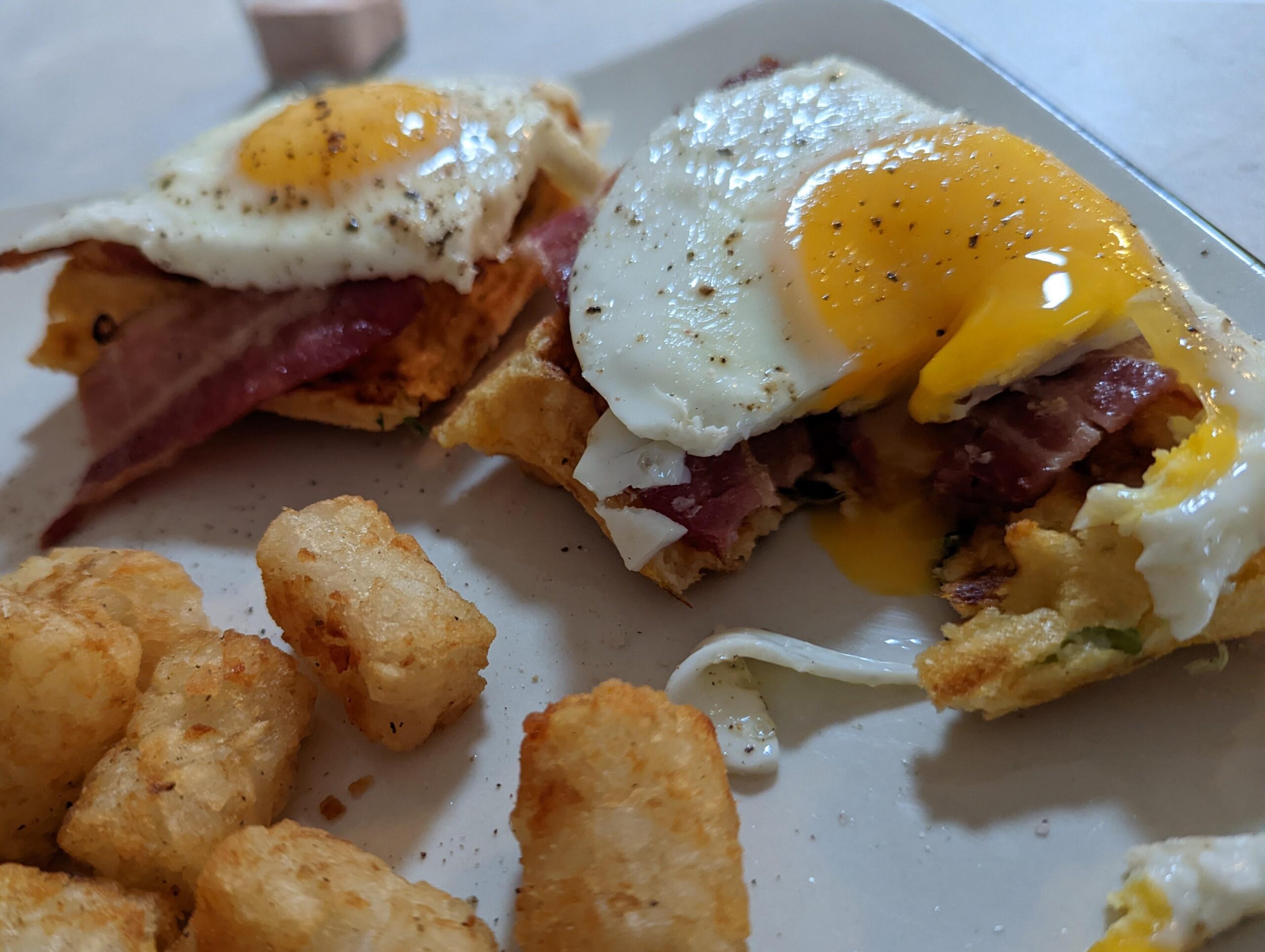Crazy tasty Cheddar and Chive waffle, bacon, tots and an egg on it for breakky today.by Vancouvercrazies Write A CommentYou must be logged in to post a comment.