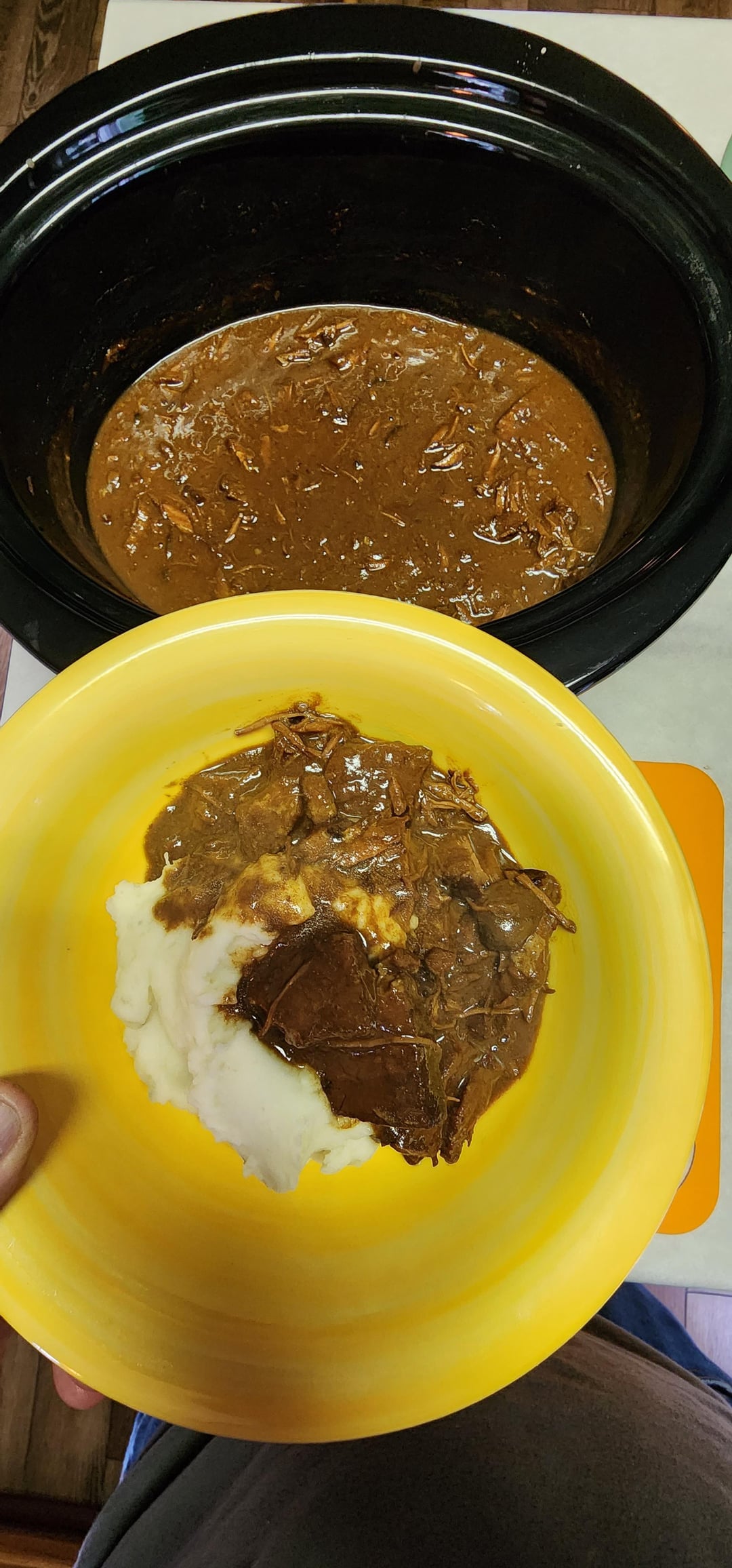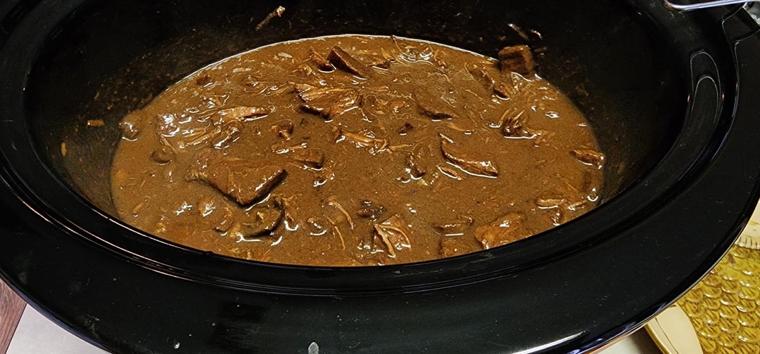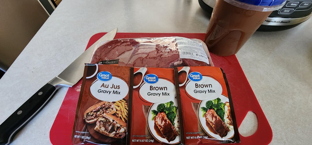 “` Ingredients: —————— 1kg London broil 2 packets of powdered brown gravy 1 packet of powdered au jus 0.5L no/low sodium broth 15-30ml Kitchen Bouquet or Gravy Master