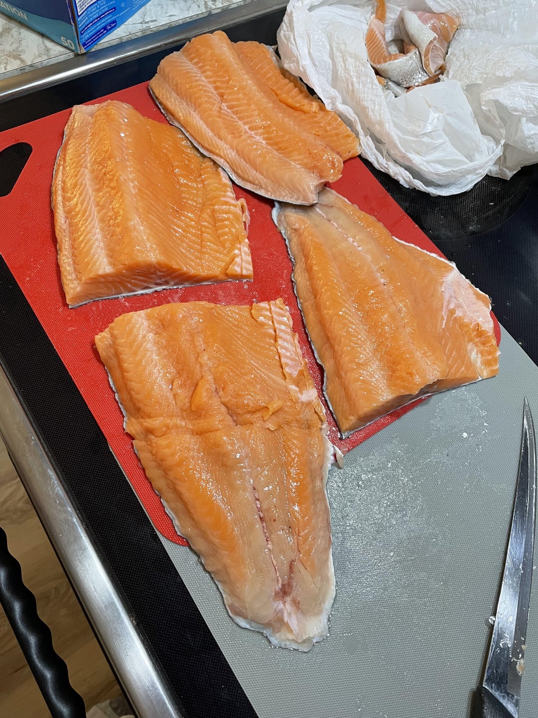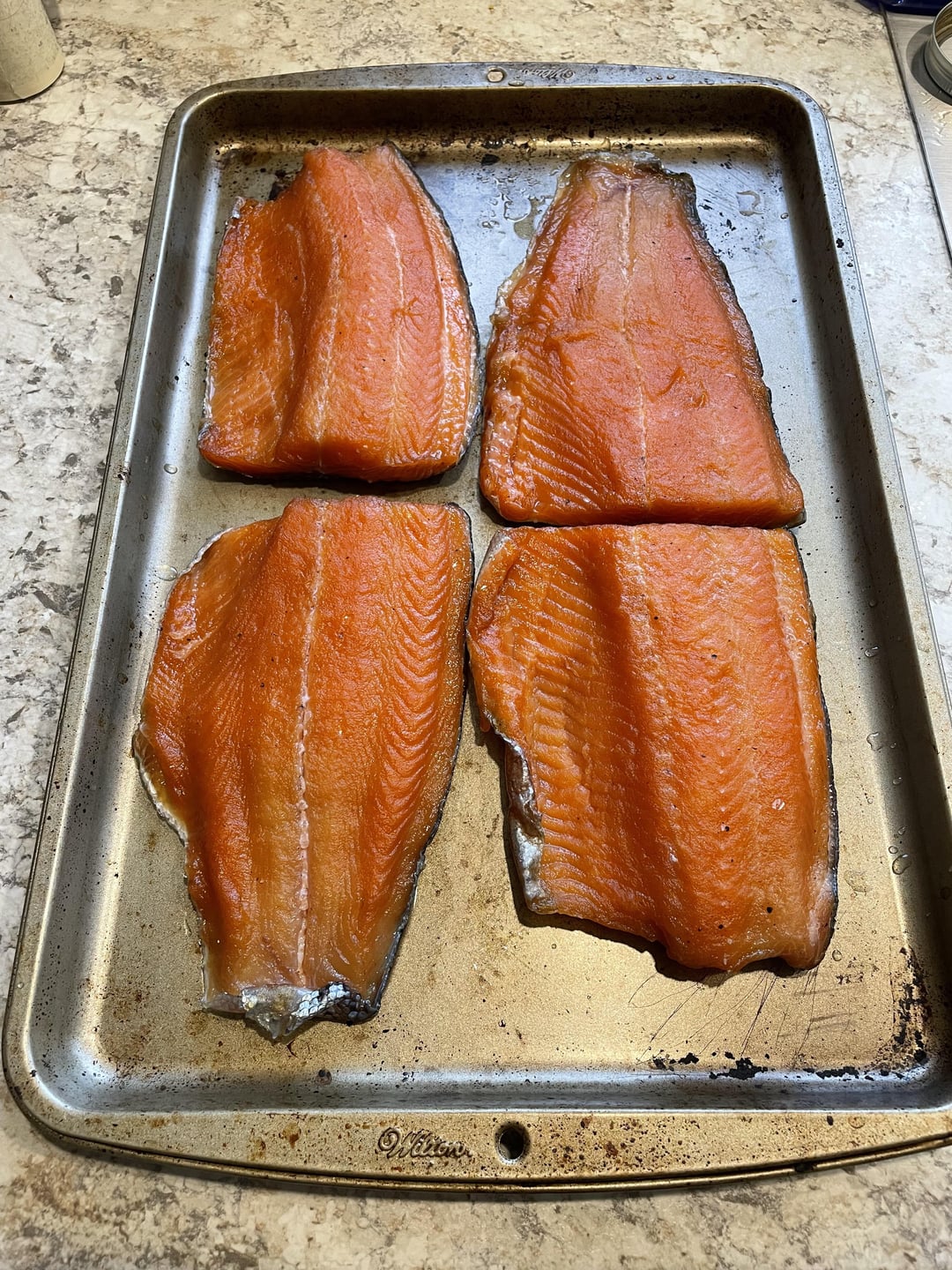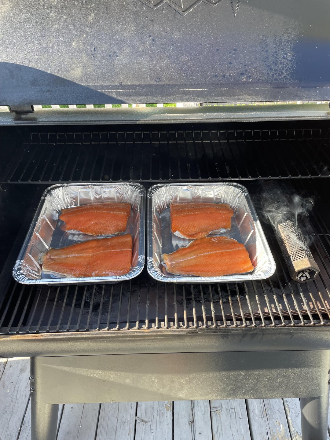 Beautiful trout and a fantastic job smoking it. I love smoked trout. I use a glaze with honey, apple cider vinegar, cayenne pepper and brown sugar. Getting hungry just thinking about it.