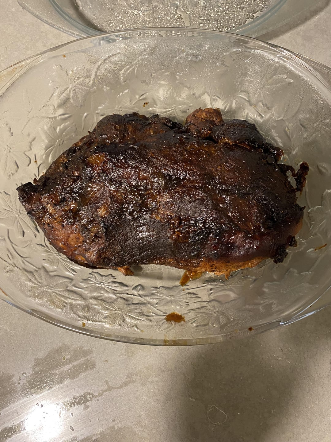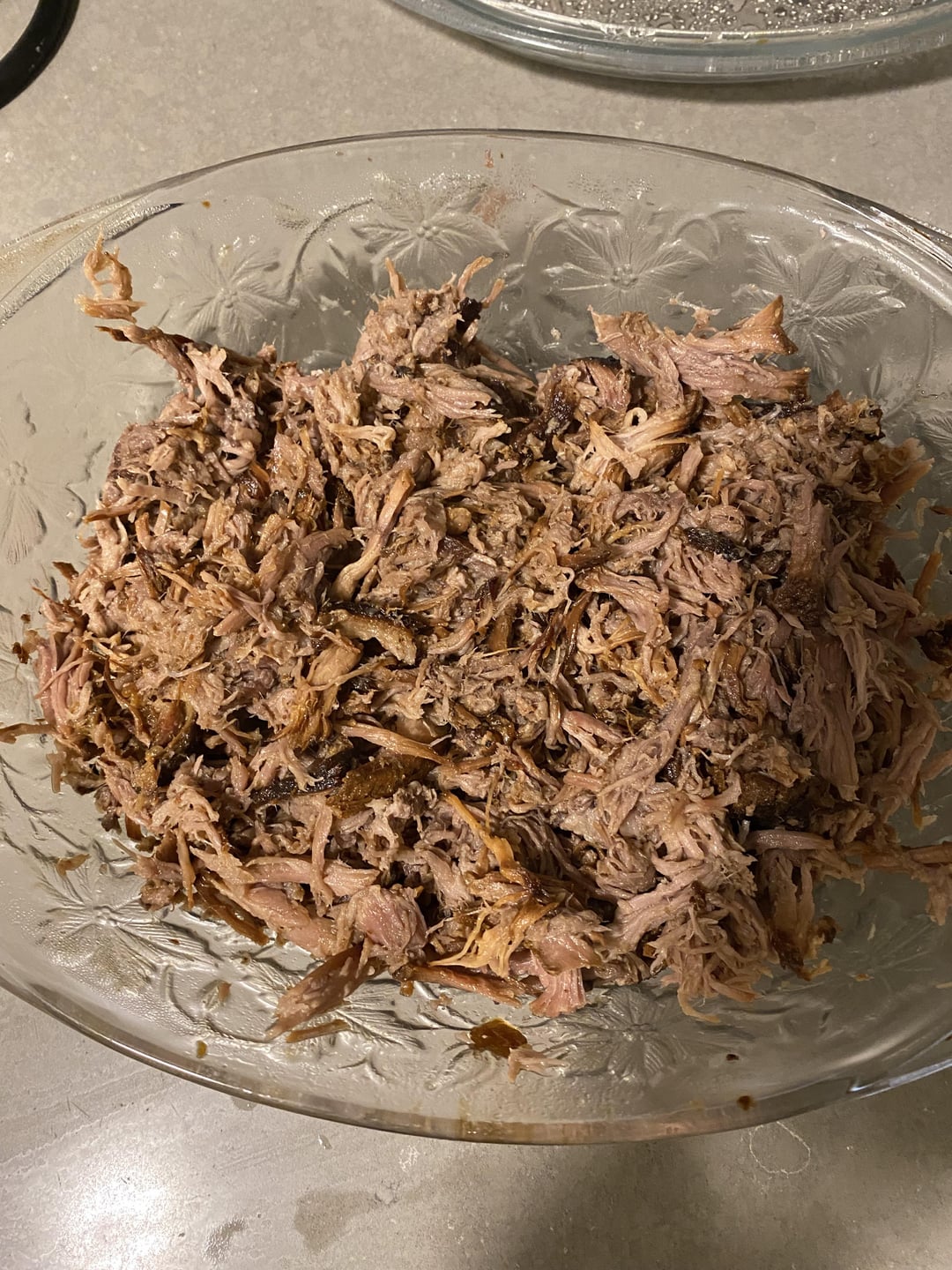 Seasoned with applewood rub. Threw some caramelized onions and fresh minced garlic cloves on top and some bbq sauce in there. Added about two cups of beef broth.
