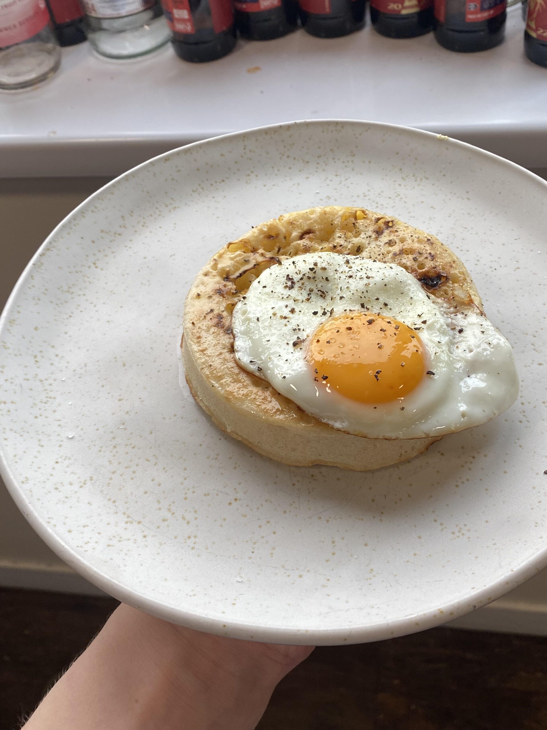 Is that a homemade crumpet? Yum.