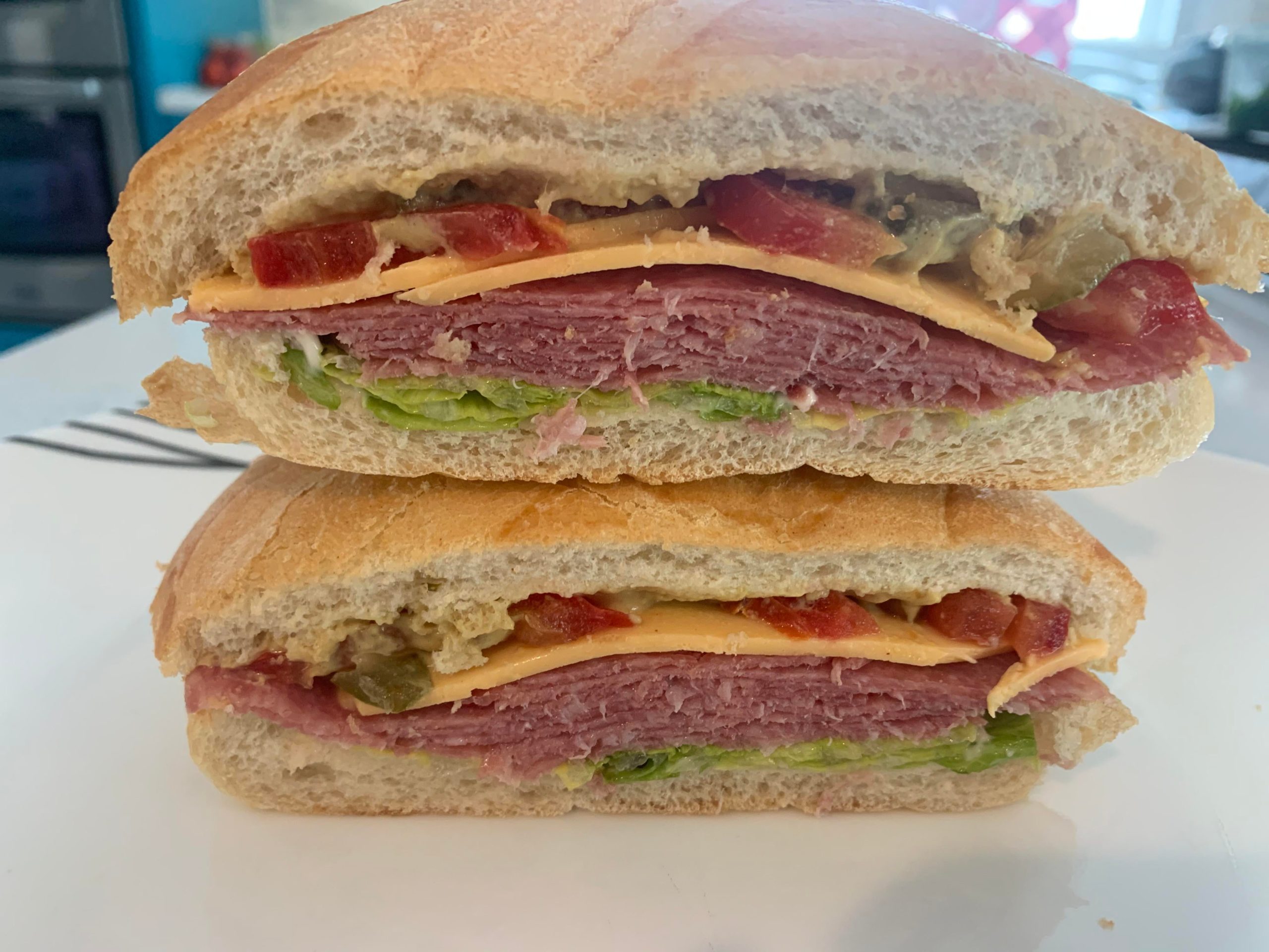 Hard Salami, American, Lettuce, Tomato, Devil Spit Pickles, Mayo, Dijon, on a Soft Roll Dining and Cooking