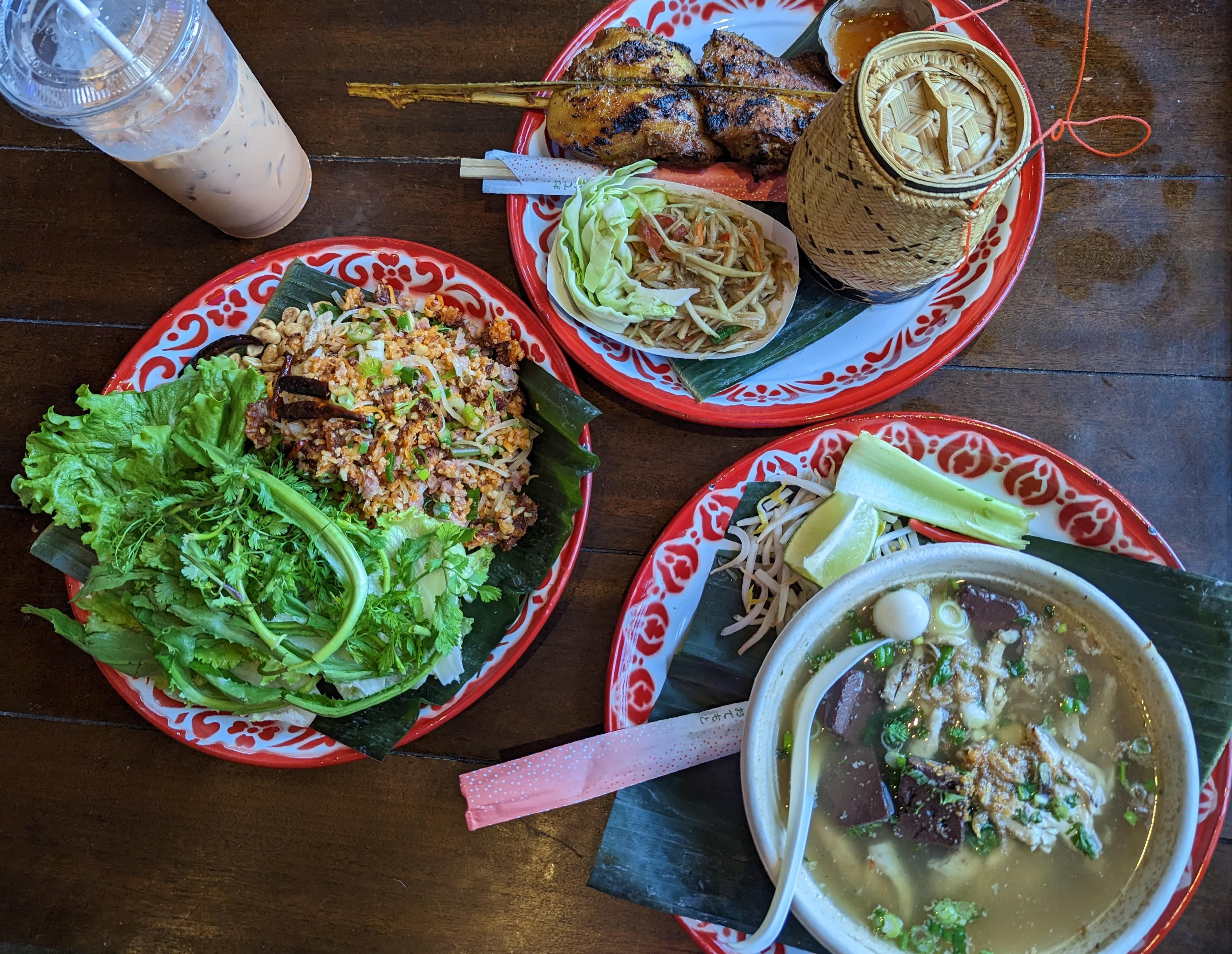 – Nem Khao: lettuce wraps with sour cured pork, crispy rice, and herbs. Super bright and tangy and delicious. You can request different spice levels.