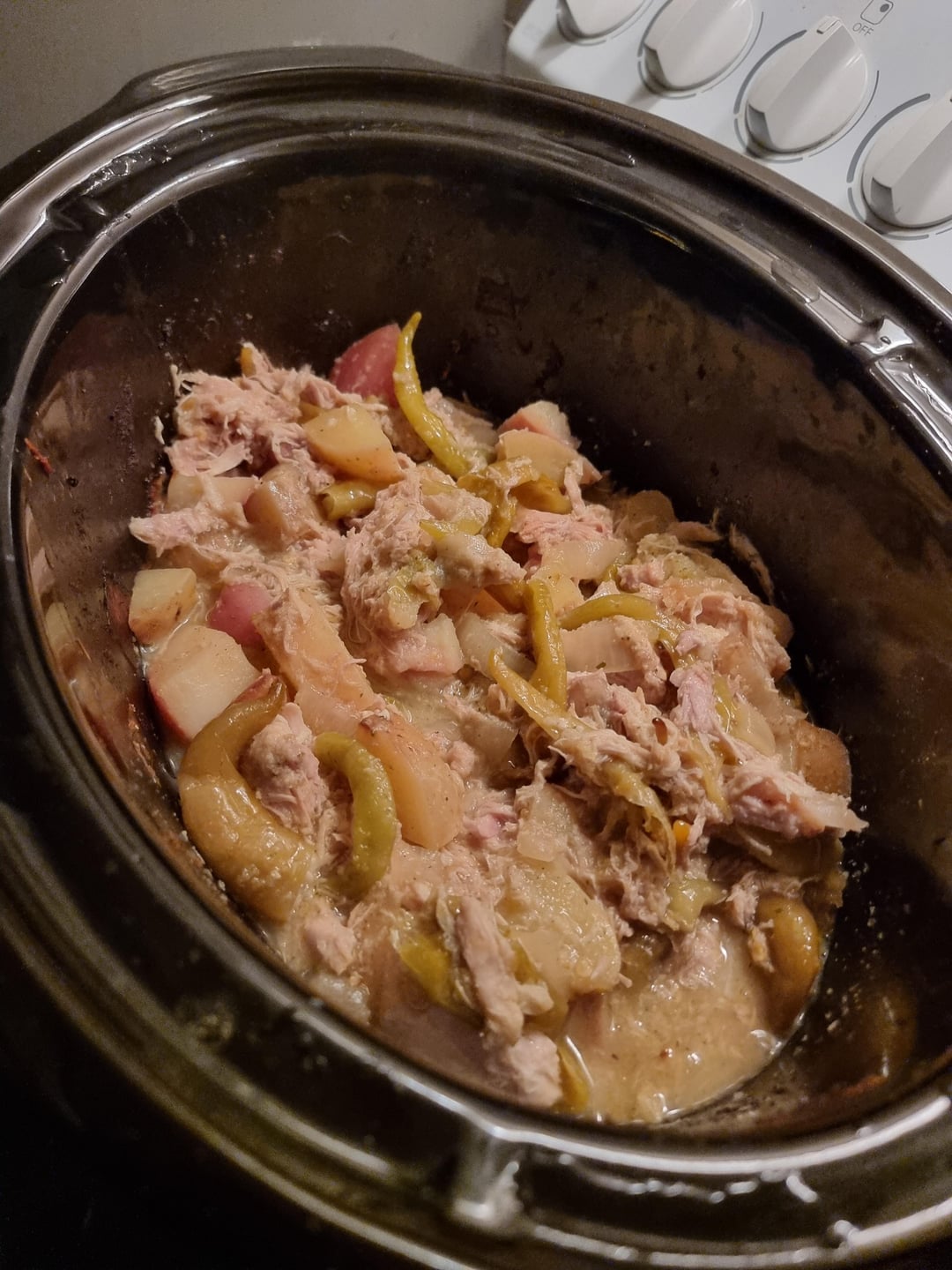 So I pretty much followed the standard Mississippi Pot Roast recipe, except I used chicken.