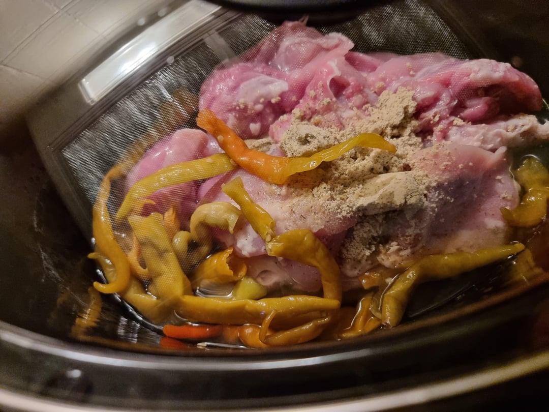 • Pepperoncini peppers (Or suitable subs) and pepper jar juice.