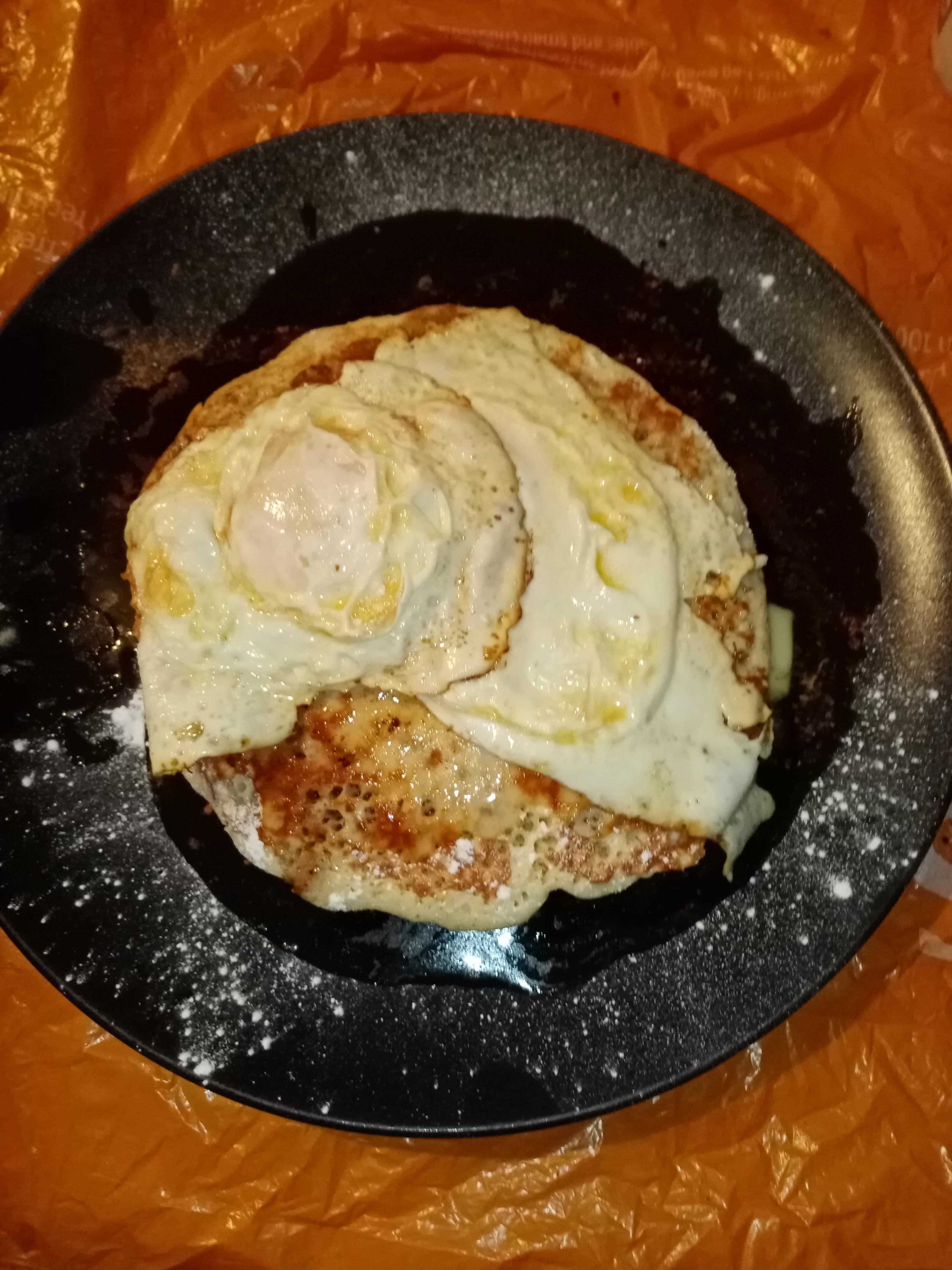 Wanted pancakes, but craved an egg, or two, or three.