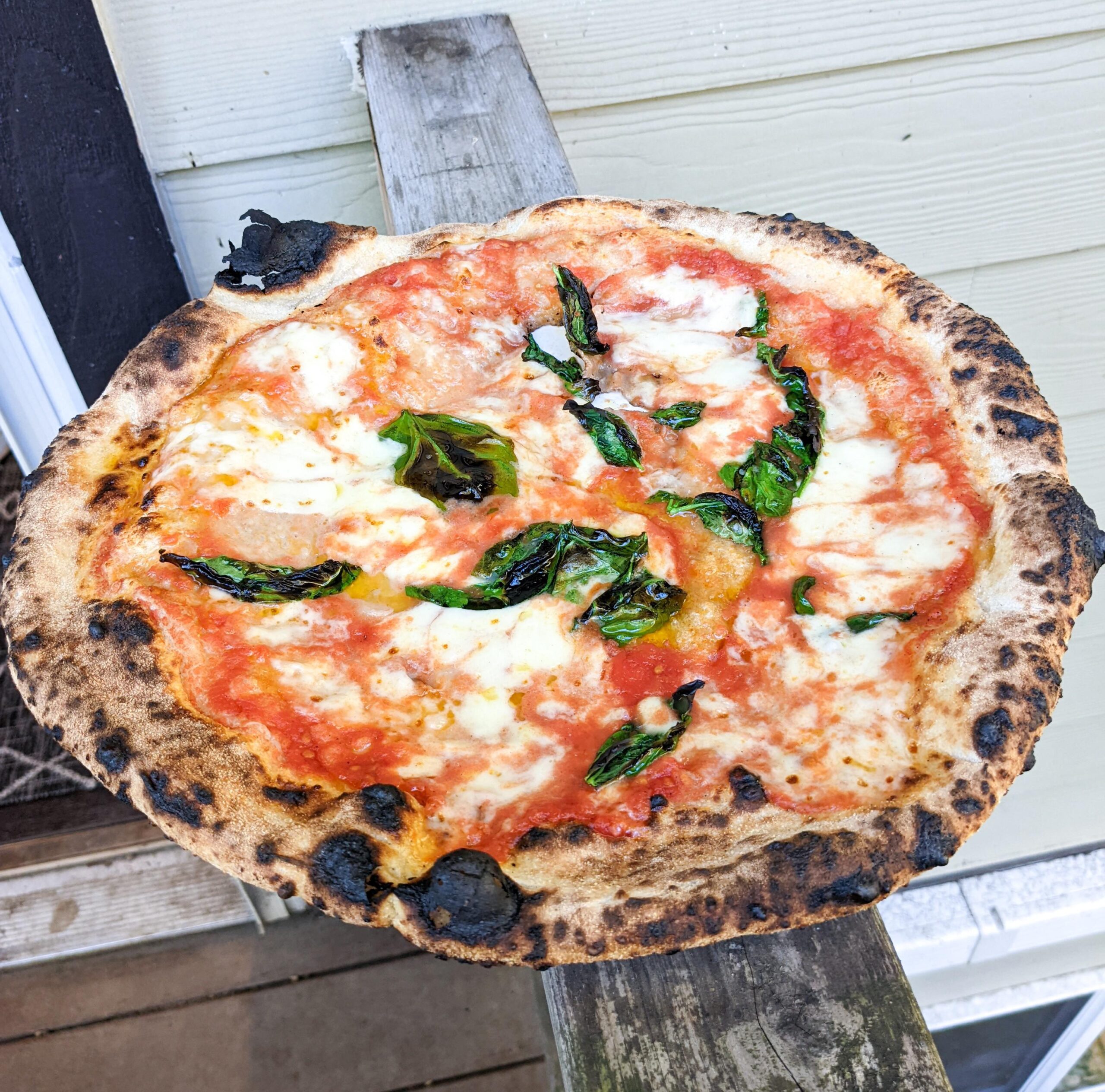 The sauce to cheese ratio, and the meltiness, looks perfect. The crust looks a bit overcooked for a Da Michele clone (but, coming from New Haven, I would not complain at all lol). Not sure how you can achieve both in a small oven. Perhaps quicker initial rotation, then dome and rotate, dome and rotate, dome and rotate, etc…