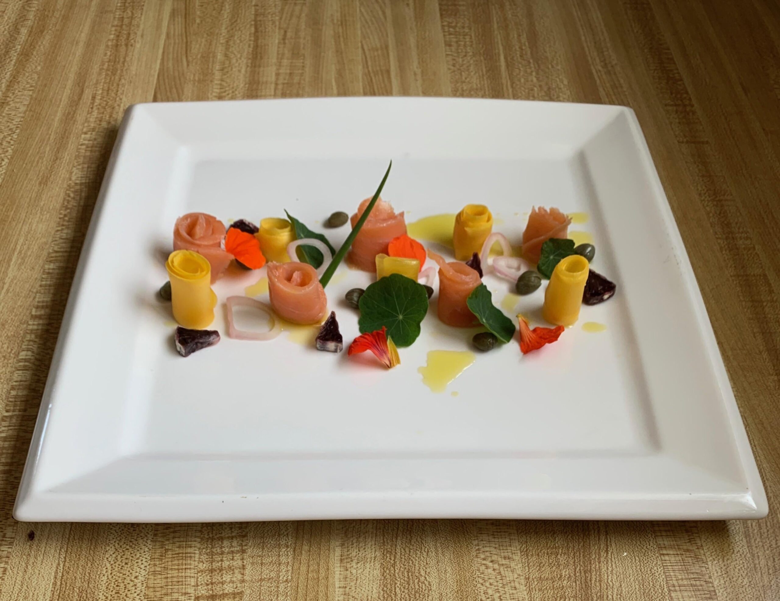 Smoked salmon, blanched Italian squash, nasturtium salad.by healthygeek42 7 Comments codemonkey1312 2 years ago Tighten it up and get a better plate. Maybe a circle plate and crescent moon shaped plating and you’ve got a 5 star dish. chefadams 2 years ago Yes, I agree…tighten it up on a smaller plate. Looks too pretentious. But I like the components Manaan909 2 years ago Looks like Lego parts on such a big plate Pywacket1 2 years ago I think the plating is beautiful and not pretentious, which is an issue around this sub. paulw252 2 years ago It looks like it would taste like fingers. ThermoNuclearPizza 2 years ago Perfect mise en place, now just plate it and you’re off to the races with this one. FreddyMercurium 2 years ago Is that simply a raw shallot sliced fine?? Or did you do something different?Write A CommentYou must be logged in to post a comment.