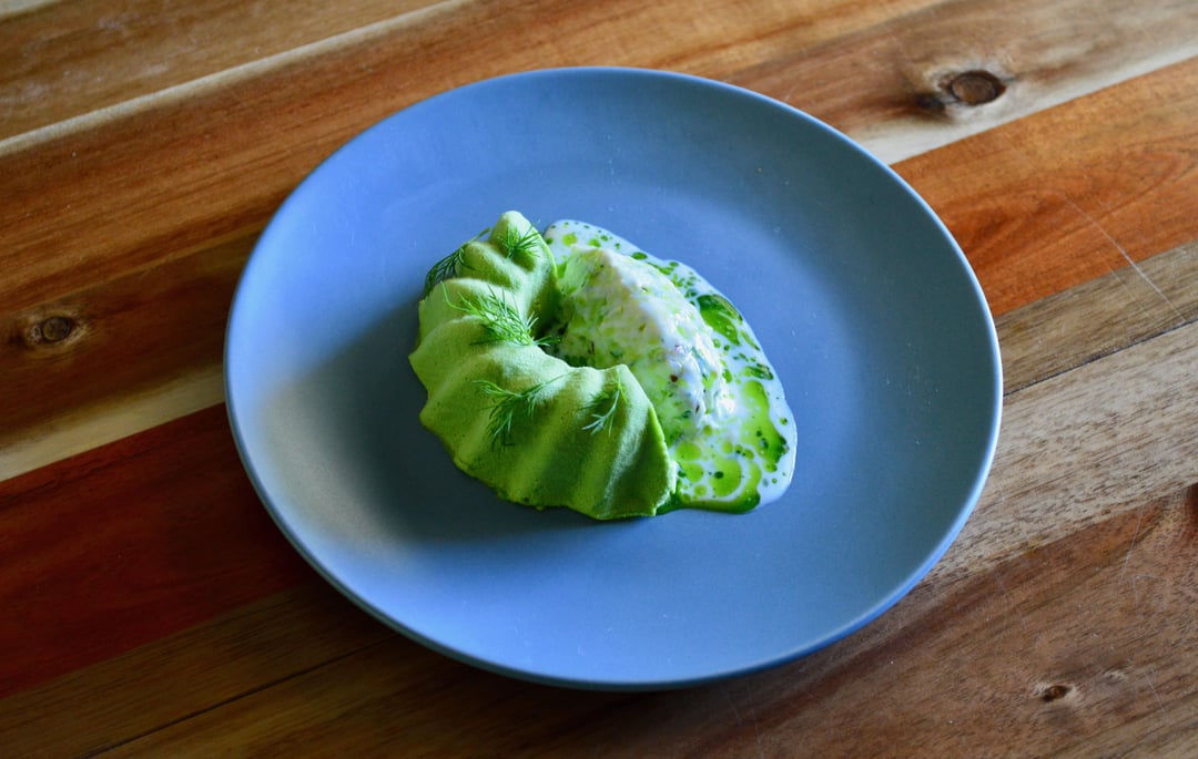 Chilled Crab Salad, English Pea Panna Cotta, Buttermilk & Dill Vinaigrette