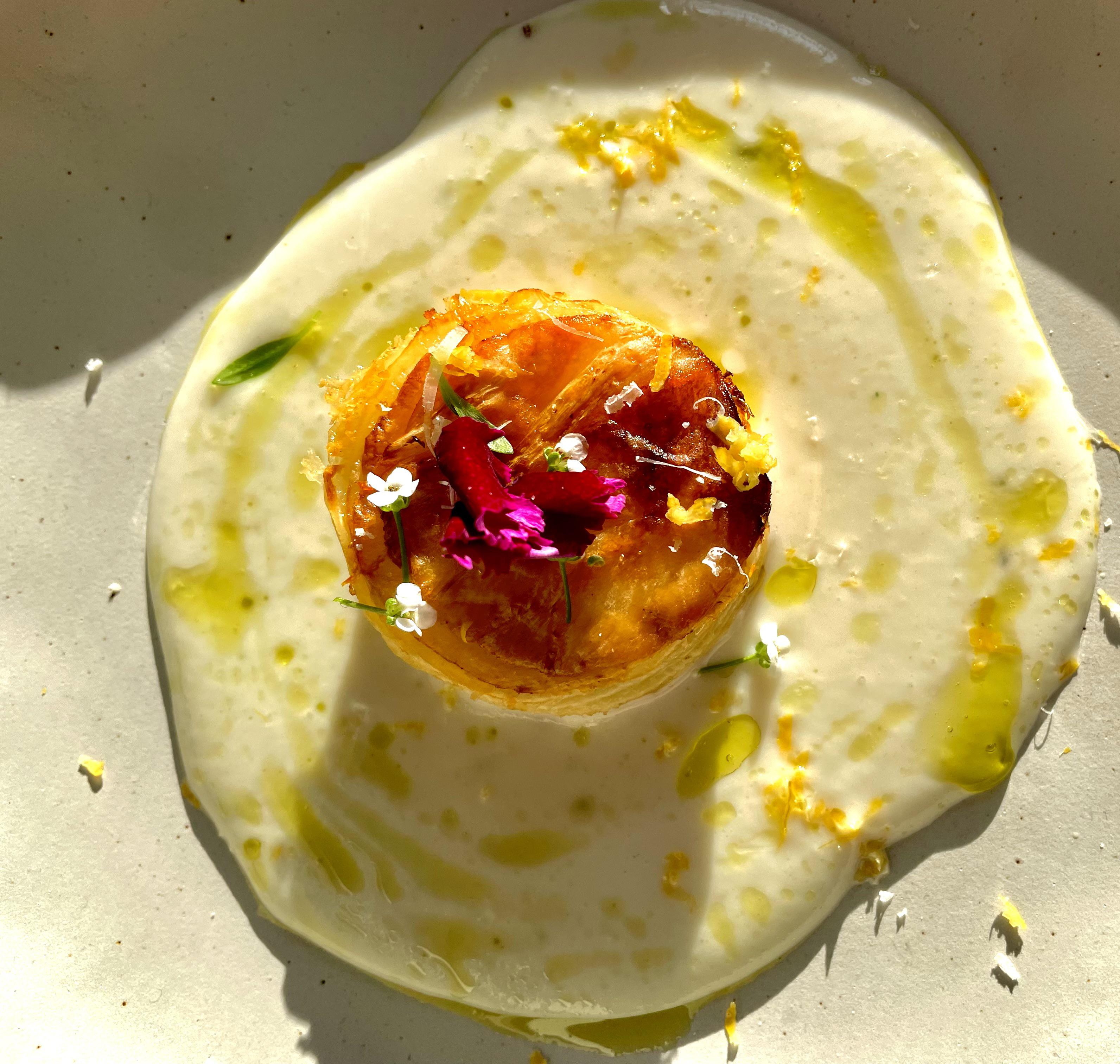 Celeriac Mille Feuille with lemon and Parmesan with a celeriac mustard sauce