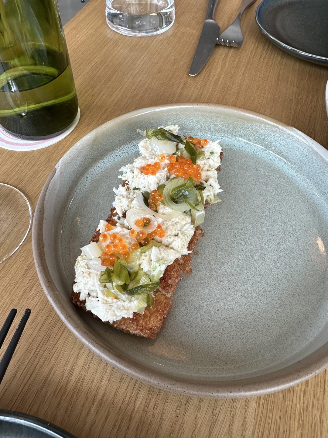 The blue crab & trout roe crispy rice is not plated well at all.