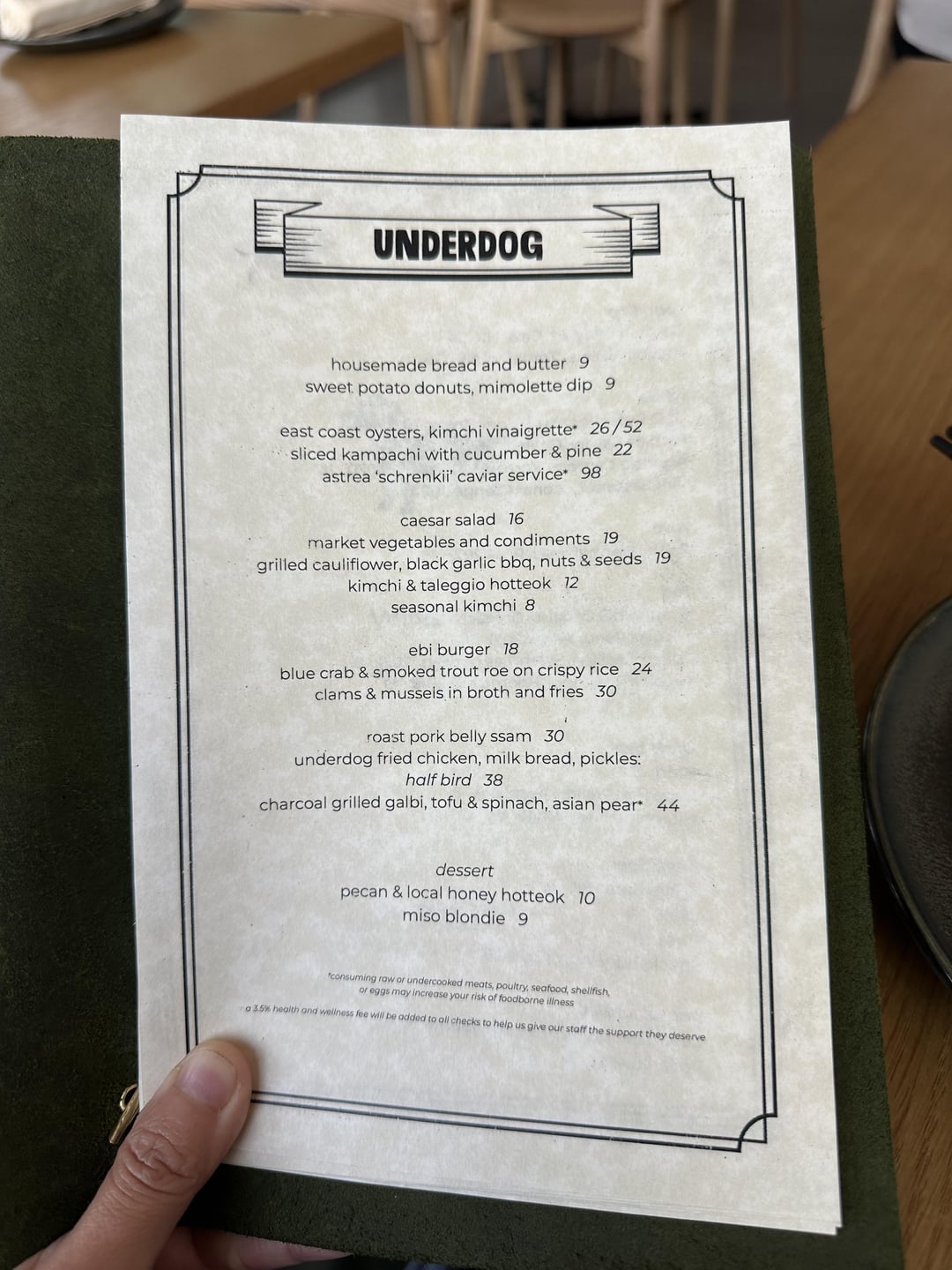 Tried Underdog last week. Great wine selections, love the vibe and great service. Food is Korean influenced but personally I find it lacking. Oysters were fresh but the kimchi vinaigrette could use more of a punch. Overall the dishes were underwhelming for me. The Korean flavor tone wes really mild. The sides for the Bossam were decent but the pork belly was a little dry. They plan to change menu seasonally and improve from feedback.