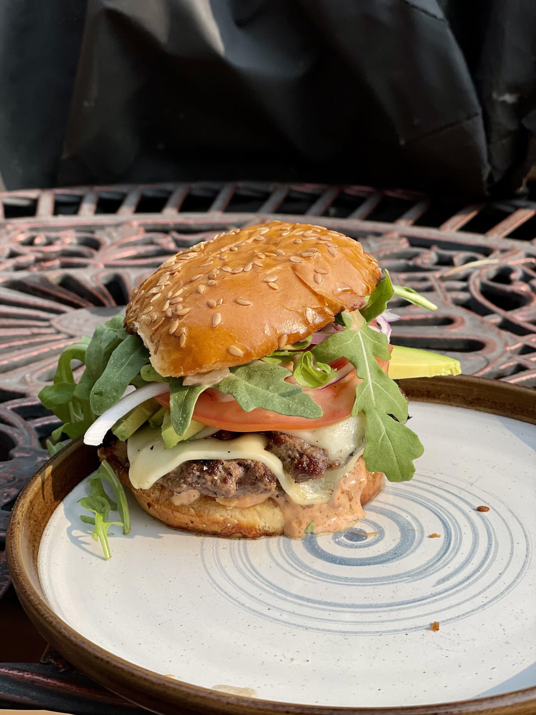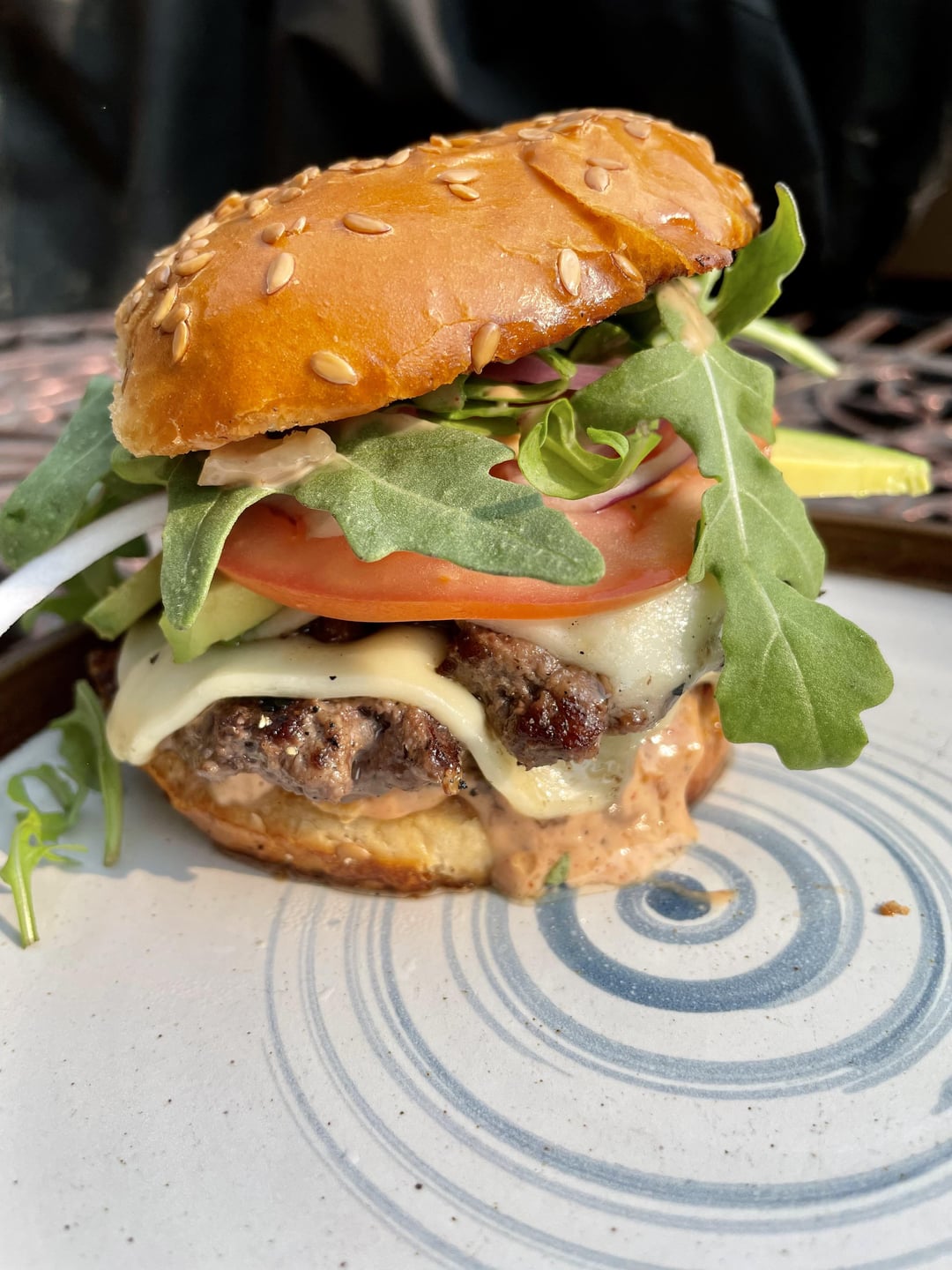 Got 1/2 price on wagyu 80/20 at my local market. Toppings were basic: American cheese, avocado, tomato, red onion, arugula, homemade “special” sauce all on a toasted sesame bun. I pre smashed the beef on a tray before grilling them up. Hooooly heck 🥵